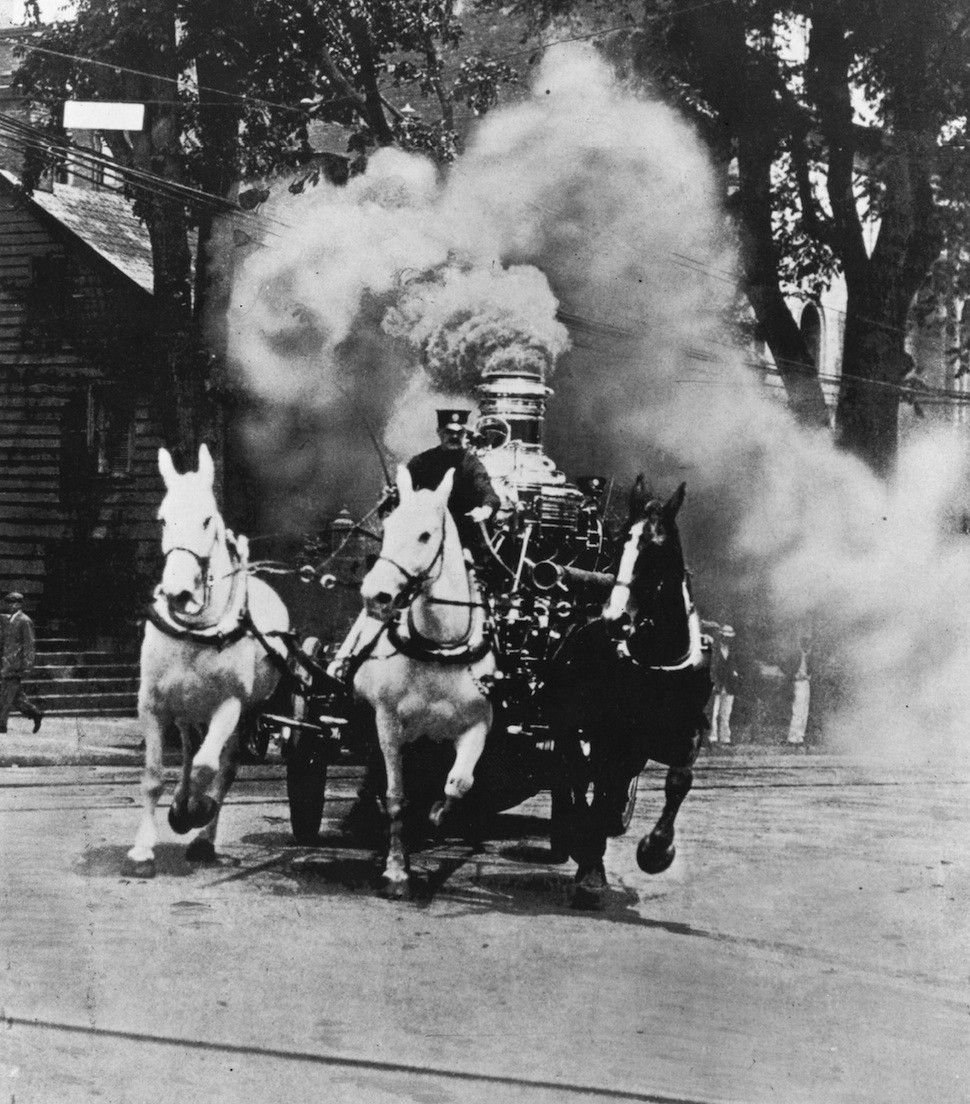 На всех парах — это вот так. На снимке начала XX века из архивов Wikimedia показан американский пожарный экипаж. Паровой двигатель приводил в действие насос, с помощью которого во время тушения подавалась мощная струя воды. Двигатель разжигали до выезда из пожарного депо, чтобы к прибытию на место возгорания все было готово к работе. Плюс во время движения экипажа паровой свисток оповещал горожан о пожаре.