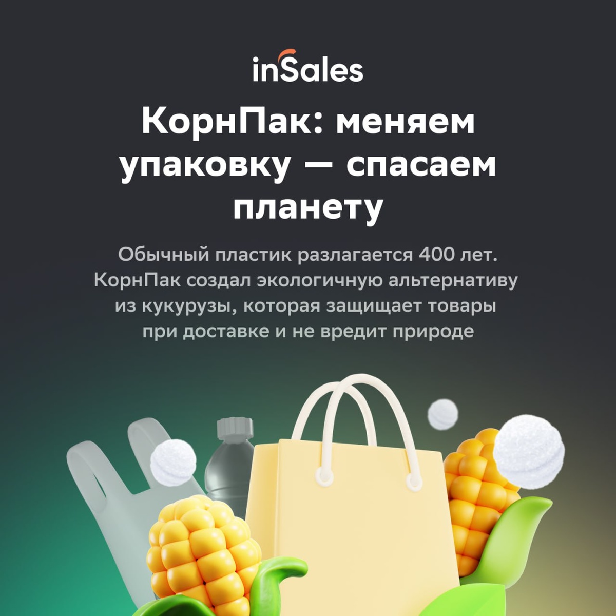 Кукуруза против пластика: как клиент inSales делает бизнес на экологичности? Знаете ли вы, что пластиковой упаковке нужно от 100 до 400 лет для разложения? Пока мир тонет в отходах, российская компания КорнПак предлагает инновационное и экологичное решение — упаковочный наполнитель из кукурузы. Мы пообщались с создателями КорнПак и узнали, как они помогают бизнесу не только защищать товары при доставке, но и заботиться о нашей планете. Они советуют селлерам обратить внимание на это решение — среди пользователей КорнПак уже производители косметики, керамики, стеклянных изделий, свечей, сувениров и даже медицинских приборов. 👆 Листайте карточки и узнайте больше об этом продукте и о том, почему всё больше компаний выбирают «зеленую» сторону в бизнесе. Подписаться на ОЧГС #insales_герои