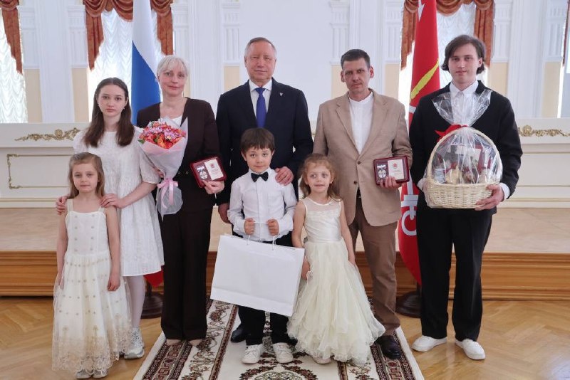 🔖 Александр Беглов наградил в Смольном многодетных родителей за заслуги в воспитании детей