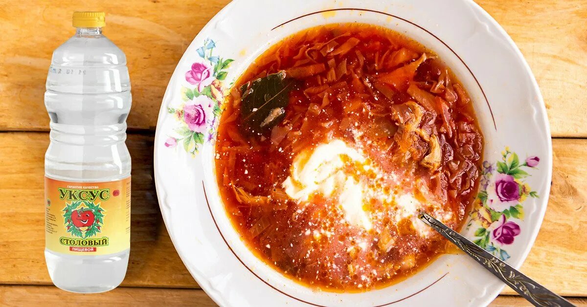 Если вы относитесь к категории хозяек, которые постоянно забывают кастрюли с блюдами на плите, то этот лайфхак вам придется по вкусу. Добавьте в суп 3 капли – и блюдо будет стоять свежее всю ночь. Как всем известно, в тепле бактерии размножаются просто с молниеносной скоростью. Особенно это актуально для блюд на основе мяса или с добавлением овощей – они создают наилучшие условия для развития микроорганизмов. Уже через несколько часов в комнатной температуре в кастрюле появится немало микробов. Из-за них блюдо теряет свежесть и становится непригодным для употребления. Но переживать не стоит! Обычный столовый уксус не даст скиснуть вашим супам или борщу. Несколько капель этого продукта, добавленного в сваренный и еще не остывший суп, послужат натуральным консервантом. Кислая среда замедляет размножение бактерий и не дает блюду испортиться. Важно хорошо размешать суп после добавления уксуса и оставить его остывать на плите. Слишком большое количество продукта испортит вкус блюда. Достат