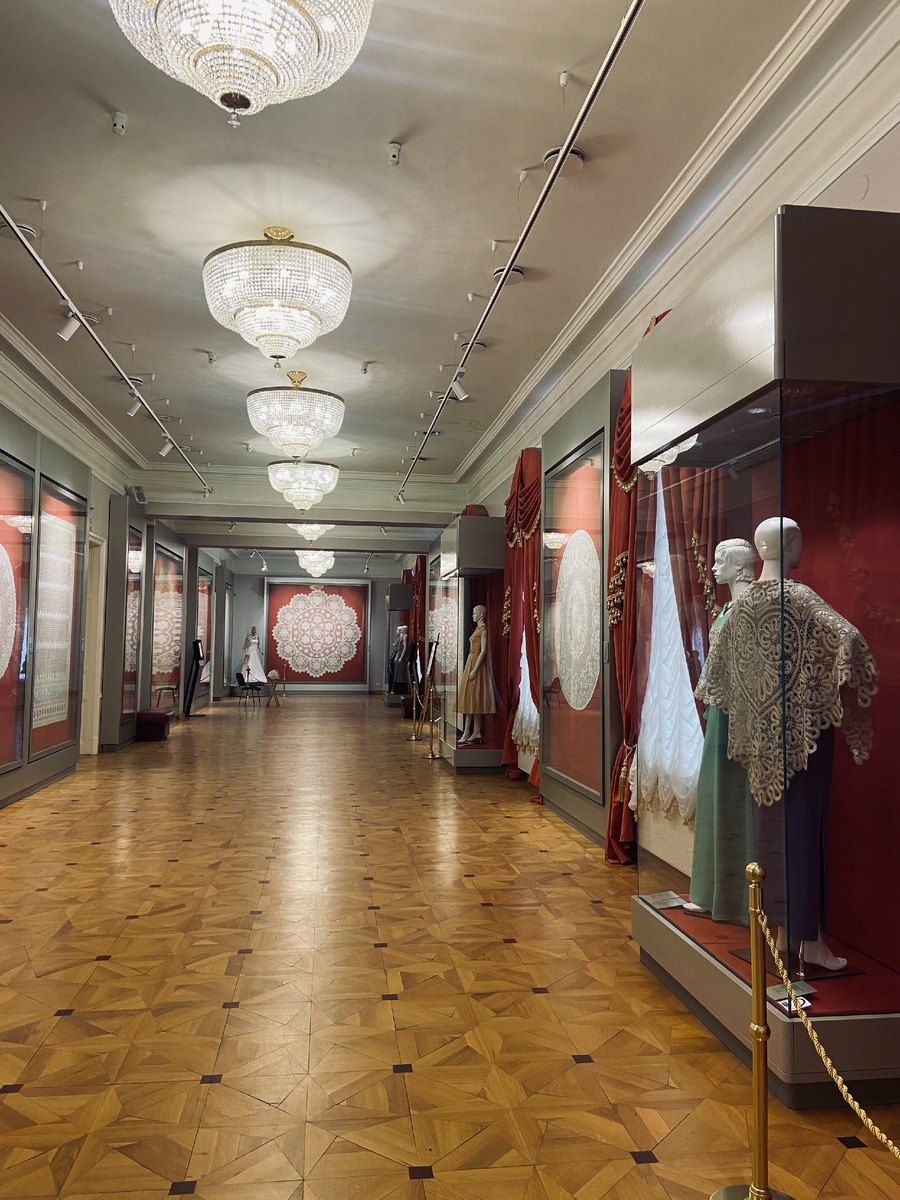 Всем привет! Сегодня снова мы в Вологде И в этой статье покажу вам один из лучших музеев, в котором я побывала. Кстати, по опросам туристов он вошел в 10 лучших российских музеев Конечно это музей кружева, и кружева здесь действительно очень много… Основная экспозиция музея посвящена основанию и развитию традиционного художественного промысла Вологодчины и мировым тенденциям развития кружевоплетения с конца XIX — начала XXI веков. Экспозиция Музея кружева охватывает следующие темы: Некоторые авторские кружевные изделия были приобретены у ведущих кружевниц Вологды и образцы кружева зарубежных кружевных центров Франции, Бельгии, Германии, Австрии и Польши. Авторские произведения художников объединения «Снежинка» Для музея были по специальным эскизам, изготовлены костюмы конца XIX — начала XX веков Мне очень понравились изделия со специальной символикой Очень многие полотна специально изготавливались для юбилейных победных годов Работы по формированию коллекции велись на протяжени