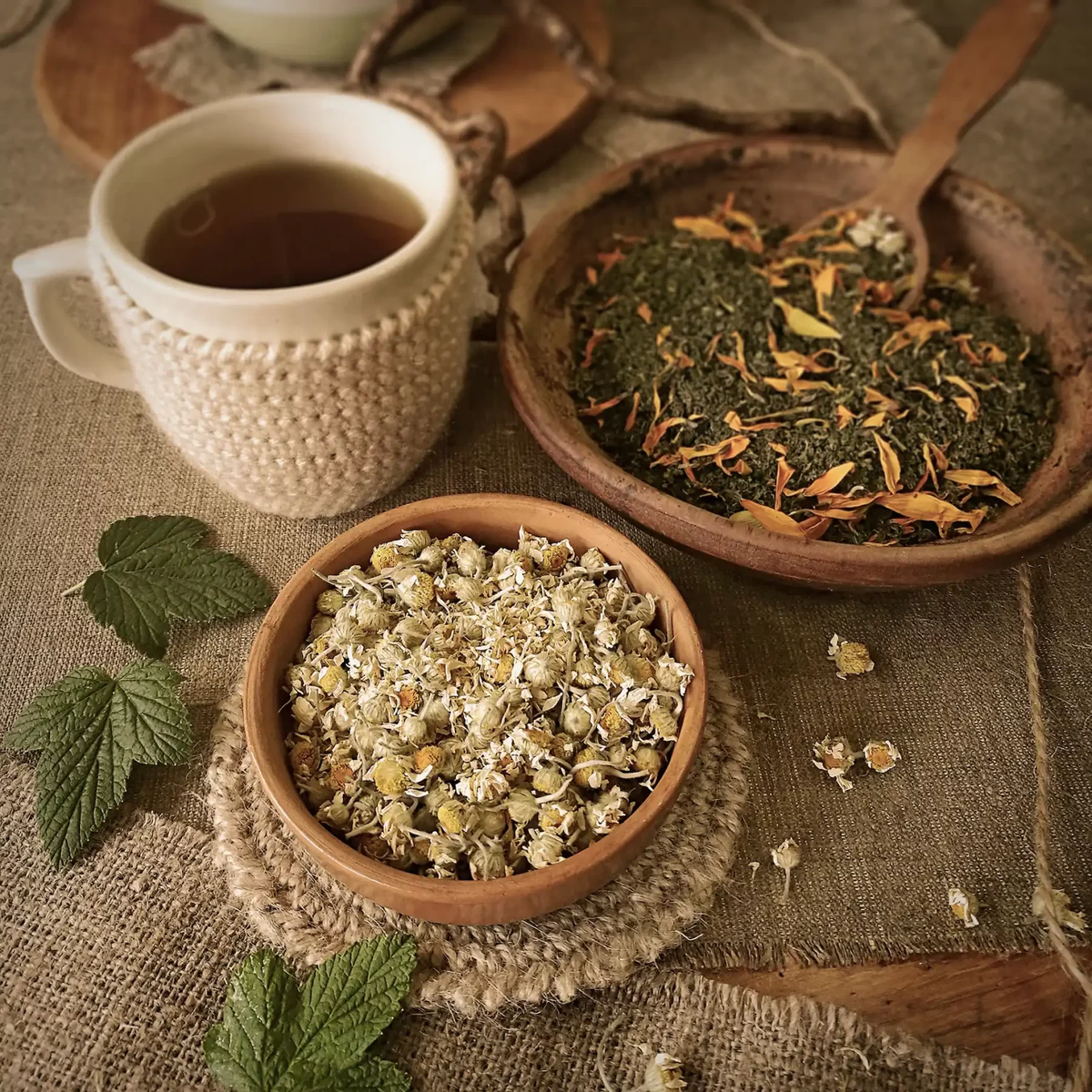 Я добавляю немного сушёной ромашки — она не только обогащает вкус нежной сладостью и лёгким медовым оттенком, но и добавляет спокойствия. А для красоты и лёгкой пряной нотки — лепестки календулы. Они словно солнечные лучи в чашке.