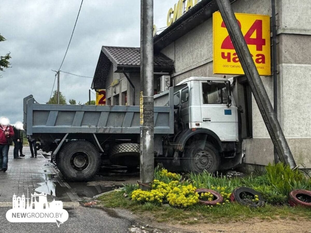 В Гродно днем 16 мая грузовик МАЗ врезался в продуктовый магазин. По информации портала NewGrodno.by, опубликовавшего фото с места происшествия, водителя с травмами увезла скорая помощь. Авария случилась возле круглосуточного магазина по ул. Суворова на окраине областного центра. Как написал источник, перед грузовиком резко затормозила другая машина — водитель МАЗа ударил по тормозам и врезался в стену магазина. При это задел припаркованный Mrecedes. Водитель грузовика получил «незначительные повреждения», передал NewGrodno.by. На место происшествия приехала ГАИ. К слову, как ранее писал Telegraf.news, 14 мая также в Гродно самосвал МАЗ провалился под землю. В местном ЖКХ назвали причину. В Гродно самосвал МАЗ провалился под землю ... Продолжение читайте тут. (Или тут.)