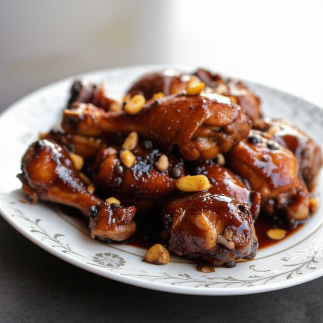 Куриное адобо Ингредиенты⤵️ 🔸Куриные голени — 800 г 🔸Соевый соус — ½ стакана 🔸Уксус — ¼ стакана 🔸Чеснок — 6 зубчиков 🔸Лавровый лист — 2 шт. 🔸Чёрный перец горошком — 1 ч.л. 🔸Вода — 1 стакан 🔸Растительное масло — 2 ст.л. Приготовление🍗 1. В глубокой сковороде разогрей масло, обжарь курицу до румяности. 2. Добавь чеснок, через минуту — соевый соус, уксус, воду, лаврушку и перец. 3. Туши под крышкой 40 минут на медленном огне. 4. Открой крышку, увеличь огонь и выпари лишнюю жидкость до густого соуса. Рецепт дня #куриное_адобо #курица #голени #бедра #птица #специи #ужин