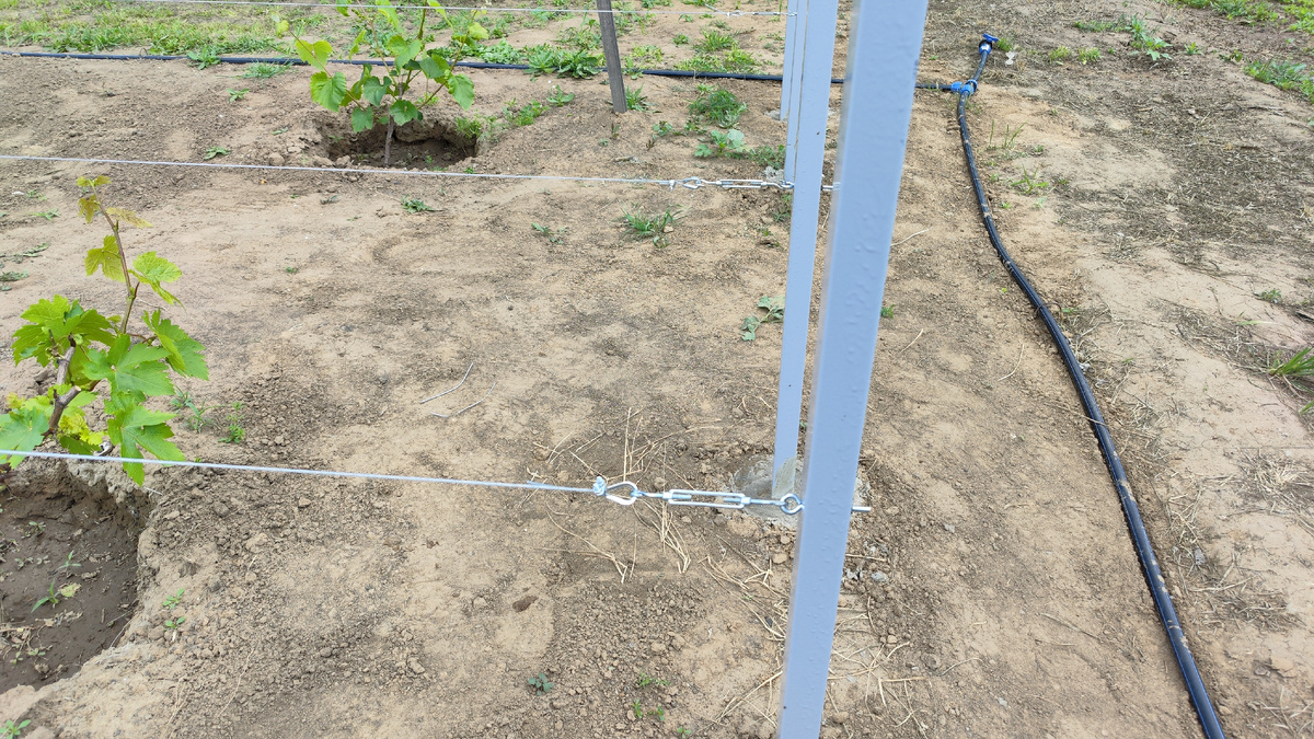 Сегодня у нас разгрузочный день. Овощи все посадили, даже скучновато стало. Теперь поливать, полоть, опрыскивать и кормить. Выбирай на вкус. Утром опрыскивал большие деревья. Опрыскиватель использую с трёхметровой штангой брансбойтом. На мелкий сад гораздо мобильнее аккумуляторный с метровой удочкой. Жуков колорадских пока собираем, появляется вместе в взошедшей картошкой. Как будто впридачу. Вот вам кустик, а вот вам к нему жуки!! Наконец натянул первый ряд тросов на виноград. 60 см от земли. Вот так получилось, вроде все ровно. Вечером пойдем опять отправим каких нибудь гадов. Проехались по деревне. Точнее по наводке соседа искали фермера. Молоко, сметана, творог,яйца торгует. Нашли, купили, цены у него очень даже дешёвые и продукция качественная. Будем теперь молочкой затариваться здесь. Мясо предлагал, будет свинью, бычка резать, можно заказать. В общем налаживали коммуникации. Раньше брали по дороге в деревню, на дороге стихийное торговое место есть. Но там примерно на 25-30%