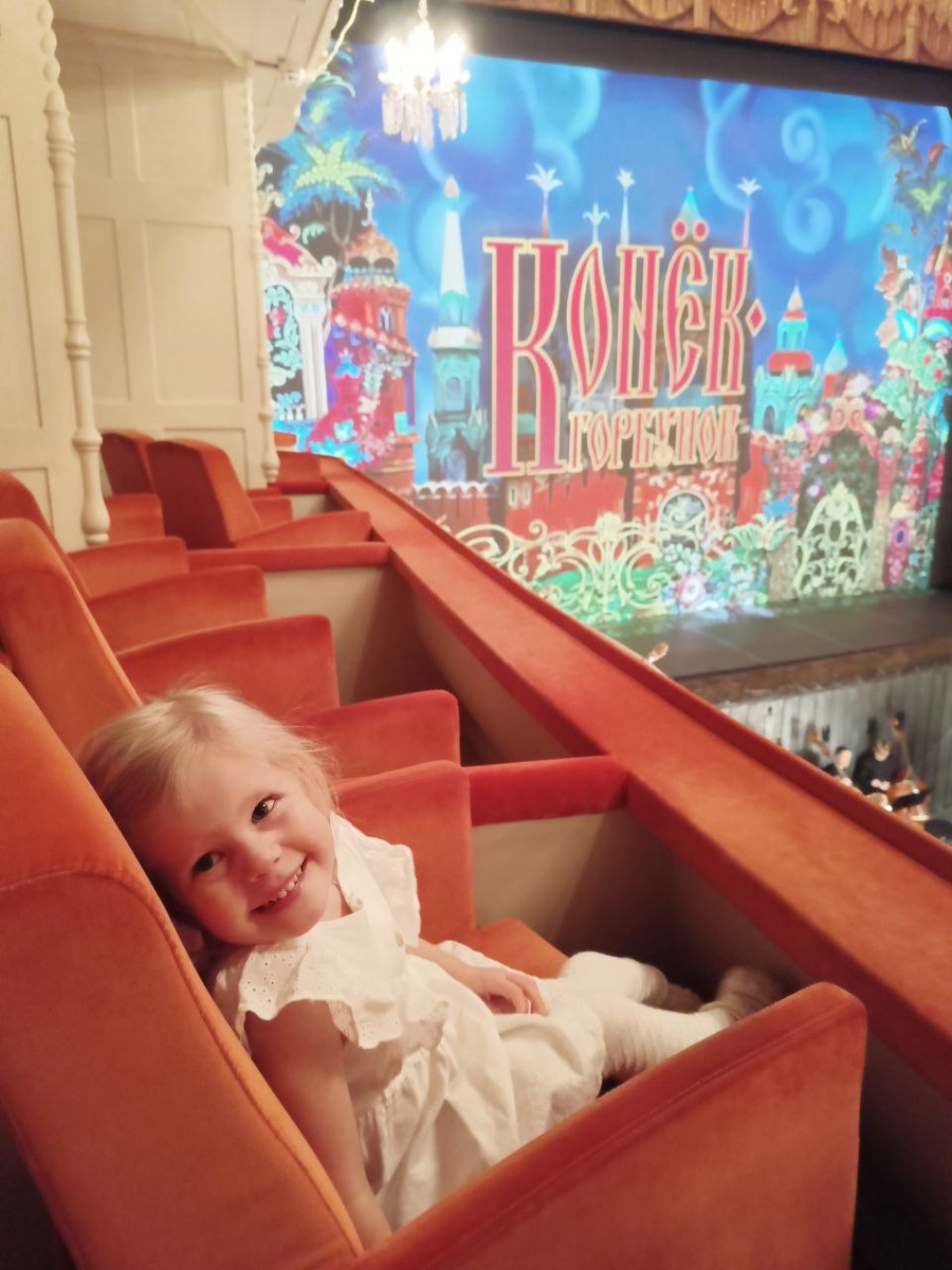 Софийка в театре Софийка опять хотела в театр на спектакль. Ей хотелось праздника и ярких впечатлений, но в силу своей природной скромности она про это никому не говорила. На выручку пришёл старший брат. В свои пять с половиной лет он был умным и смышлёным мальчиком. Однажды, собираясь в детский сад, он сказал: «Мне кажется, что Софийка хочет в театр». На самом деле в театр хотела не только Софийка, но и Саша, который часто свои желания выдавал за желания младшей сестры. Родители сказали: «Хорошо!», бабушка с дедушкой сказали: «Хорошо! В театр, так в театр!». Только они уточнили: «Балет «Конёк горбунок» в Михайловском театре* подойдёт?» - Подойдёт! – дружно ответили дети. Всё складывалось хорошо, но за день до спектакля совсем некстати у Саши поднялась температура. Врач сказала: «Ничего, пройдёт, но в театр мальчик не идёт!». Саша, конечно, расстроился, но попросил, чтобы ему принесли шоколадное яйцо вместо похода в театр. Софийке в театре всё понравилось. Три акта, два антракта и