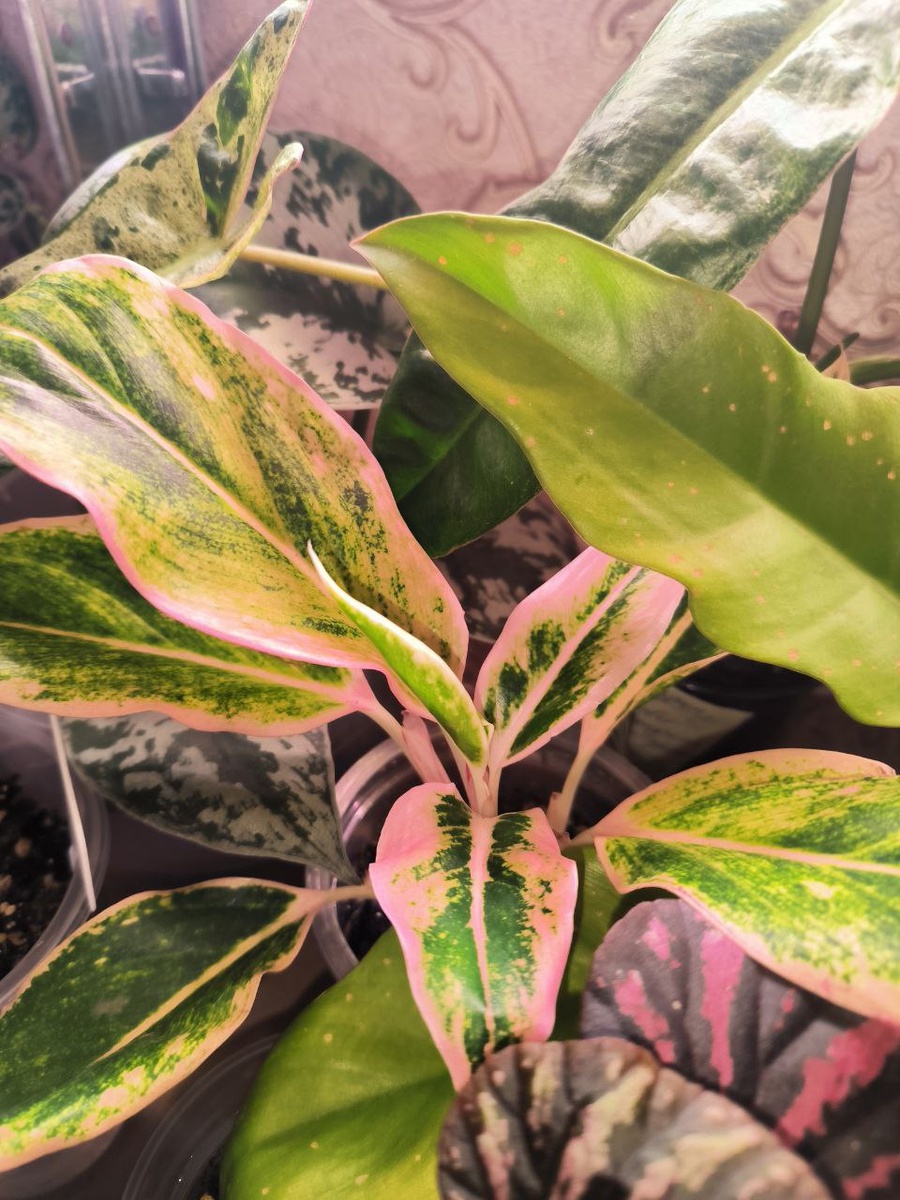 Коллекция капризных фаворитов 🪴 Если вам нравятся лиственные, и вы готовы развлекать их танцами, чтобы они наконец-то подняли свои листья, то этот пост для вас. Сегодня показываю своих требовательных любимцев: 🌿 Спатифиллумы. Настоящие зеленые монстры. Среди них фаворит Спатифиллум Сенсация вариегатный — листья с разводами, растёт как на дрожжах и не зеленеет (редкость для вариегатов). 🌿 Аглаонемы. Много разных окрасов и форм листа. 🌿 Марантовые. Растения - драма. Можно вновь упомянуть танцы с бубнами🙃 Фавориты: Строманта Триколор; Маранта Бьюти Ким вар; Калатеи с розовыми листами — очень сложный квест🫠 🌿 Филодендроны, сингониумы и эпипремнумы. Можно формировать как угодно ✂️ Могут терять вариегатность. 🌿 Алоказии.Не потерпят к себе плохого отношения. Фитильный полив + досветка = успех. Любят шутить, например сбросить листья. Фавориты - Сильвер Драгон и Регал Шилдс. 🌿 Монстеры. Листья - настоящий арт-объект. Много окрасов и дырочек 🫢 Уходят в зелень. Фавориты: Монстера Перу,
