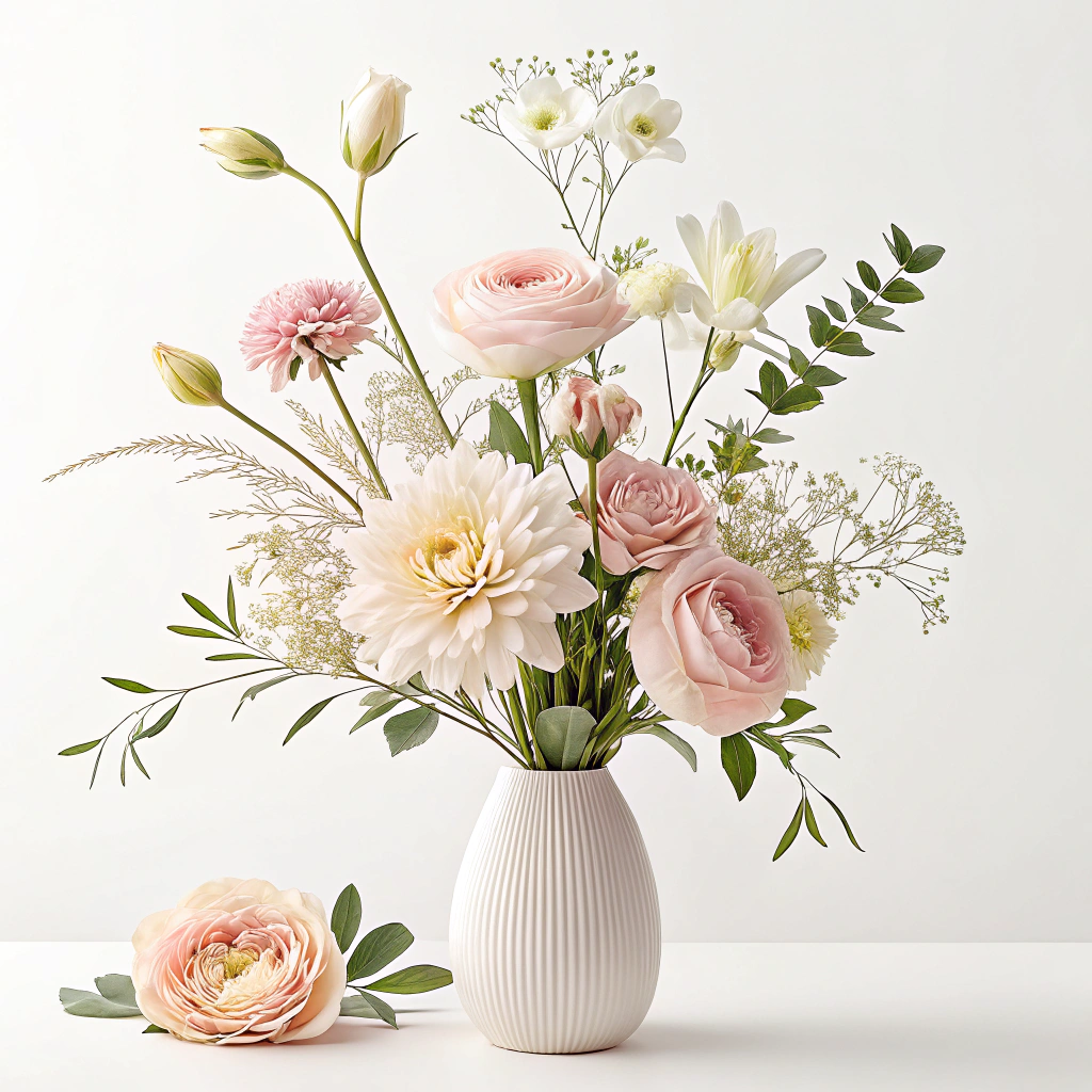 Путь к стильному букету начинается с самого главного — с подбора растений. Выбор цветов определяет настроение всей работы. Для достижения элегантности лучше опираться на проверенную классику: пудровые розы, кремовые пионы, нежно-зеленые каллы и утонченные лизиантусы. Оттенки тоже играют роль — цветовая палитра должна быть мягкой, приглушенной, в диапазоне от пастельных розовых до сливочно-бежевых.