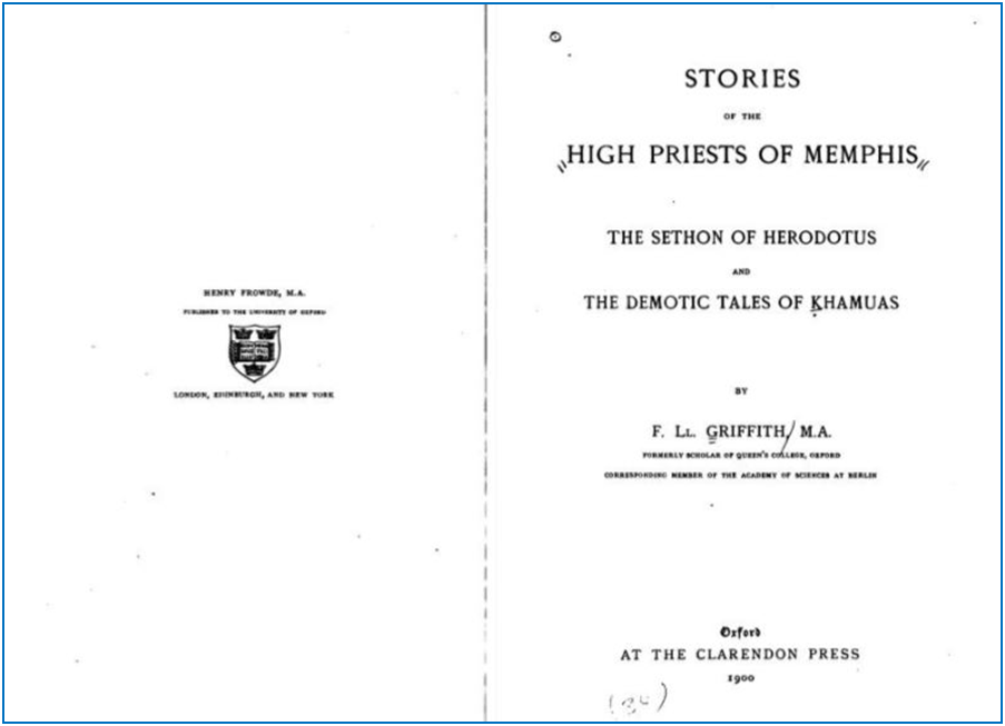 Перевод из книги F.L.l Griffith «Stories of the High Priests of Memphis». (Гриффит Ф.Л. «Истории верховных жрецов Мемфиса», Оксфорд 1900)