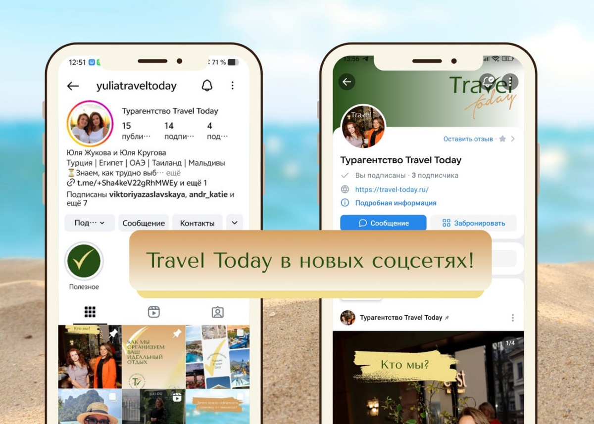 ☀️ У нас радостные новости! 🔴 Спешим поделиться с вами: теперь Travel Today есть во ВКонтакте и в Instagram*! Подписывайтесь, чтобы быть ближе — в этих соцсетях будет больше живого контента, видео, сторис прямо из путешествий и мероприятий, которые мы посещаем, чтобы узнавать больше об индустрии туризма и повышать качество наших услуг. А ещё, дорогие наши туристы, мы будем очень рады, если отметите наши аккаунты во время путешествий! ♥️ Спойлер: сегодня в сторис начнём делиться впечатлениями и полезностями из Таиланда, куда отправилась одна из наших Юль. Не пропустите солнечные кадры, обзоры отелей и атмосферу Таиланда! Подписывайтесь: ➡️ Instagram* (*Meta, признана экстремистской организацией на территории РФ) ➡️ ВКонтакте #мероприятия_обучения@travelltoday