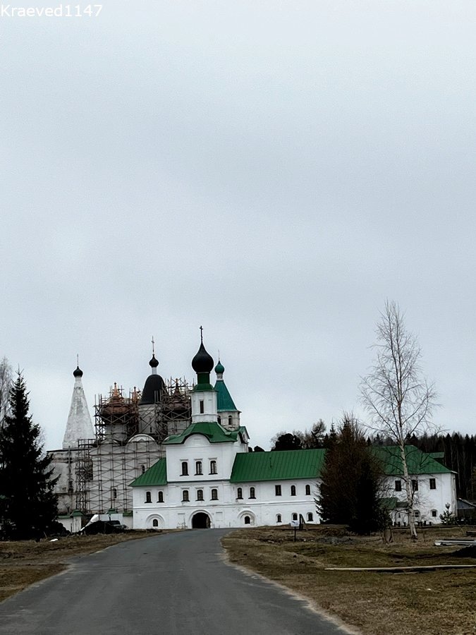 Сия делает петлю и обитель стоит на небольшом полуострове, окружённая с трёх сторон суровой северной рекой.