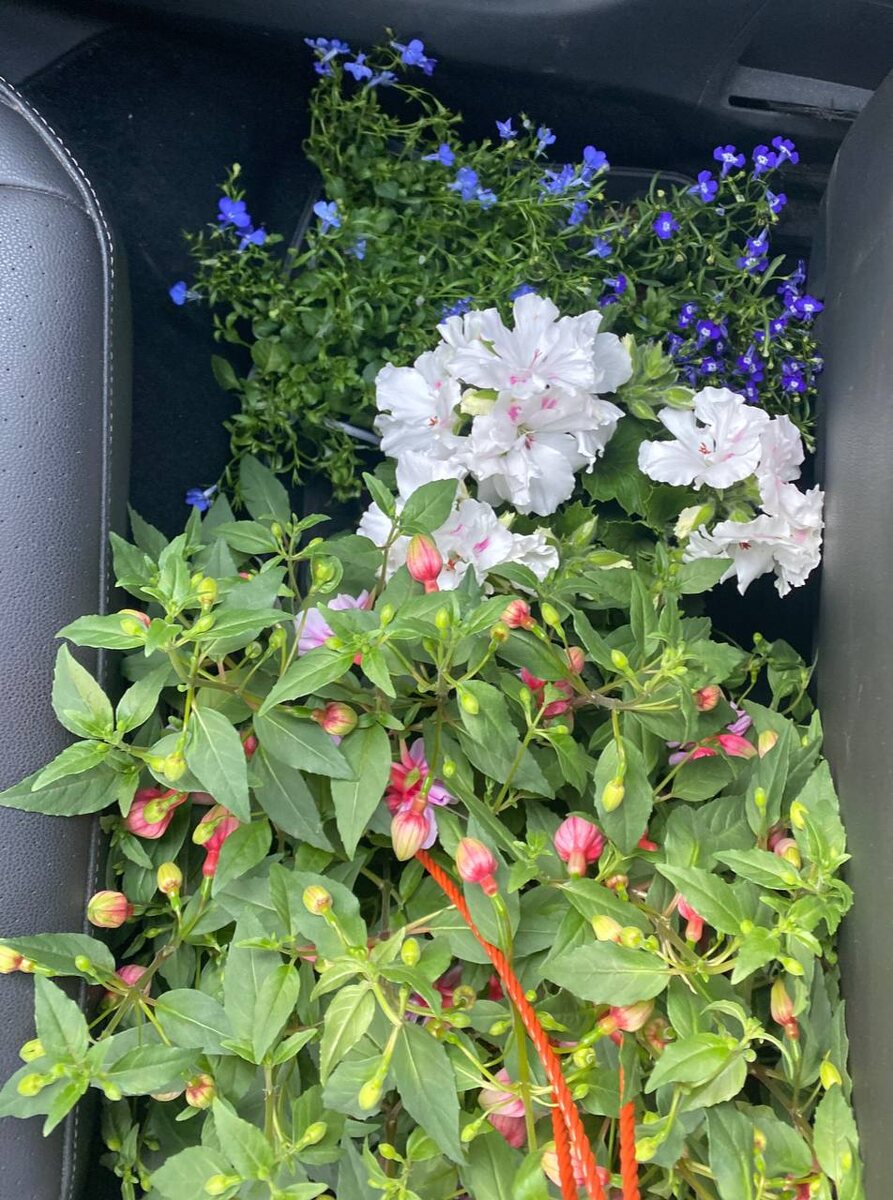 Едем на дачу, заехали в зеленый магазин и купили цветочков в горшки на террасу🥰