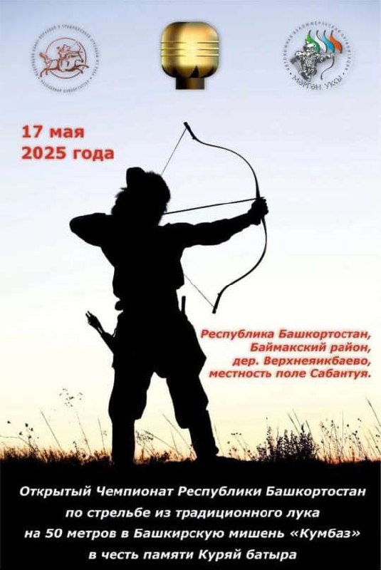 Приглашаем всех желающих принять участие в открытом Чемпионате Республики Башкортостан по стрельбе из традиционного лука, который состоится 17 мая 2025 года в 10:00 в деревне Верхнеяикбаево, на поле Сабантуя. Мероприятие проводится в память о Куряй батыре.
