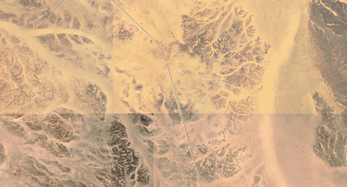 Мы покидаем Йемен. Дорога зовет на север, снова в Саудовскую Аравию. Мы еще не были в ее столице, Эр-Рияде, и пора это исправить. День 136-138. 16-18 мая. По дороге в аэропорт Эр-Рияда. Путь Шибам-Эр-Рияд - не самый популярный туристический маршрут в мире. В этой части Йемена нет вообще ничего, кроме дороги: После границы наблюдается некоторое оживление. Появляются городки, есть и интересные достопримечательности. Вот, например, кусочек пустыни Урук-Бани-Маарид - первый саудовский природный объект в списке ЮНЕСКО: Под охрану эти территории взяли, в первую очередь, ради вот этих ребят - аравийских ориксов: Там красиво и рельефно: Чуть дальше по трассе находится город Вади-эль-Давасир. Про него вы должны узнать две вещи. Первая - здесь есть классный монумент с чайниками: Вторая - 60% города занято круглыми орошаемыми полями. Вот они на спутниковом снимке: Благодаря таким технологиям можно даже при жаре до +50 получать стабильные урожаи. Хоть тут везде пустыня, иногда можно встретить реки