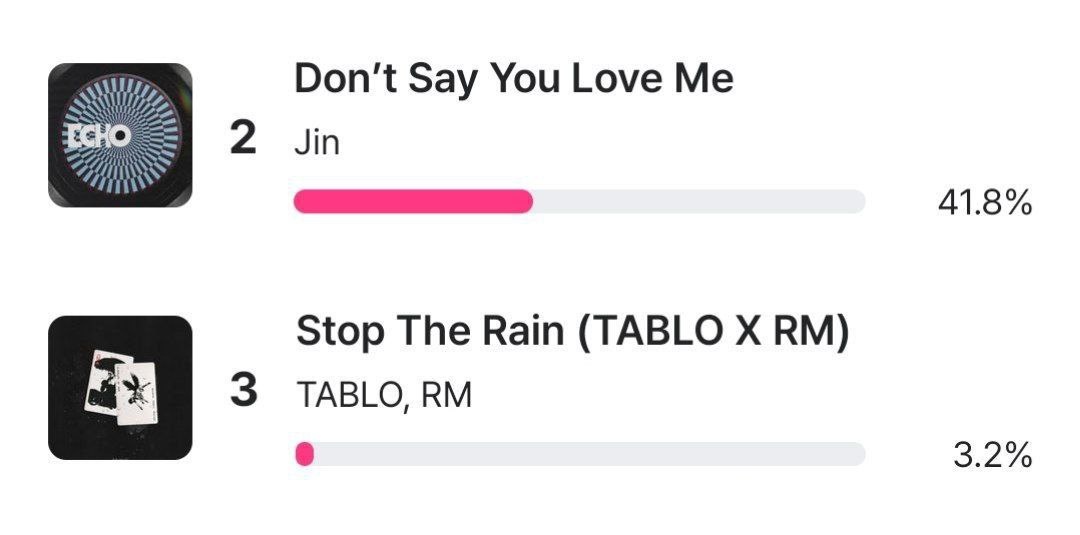 🍥 Песня Джина "Don't Say You Love Me" и песня Табло и Намджуна "Stop The Rain" были номинированы на предварительное голосование M