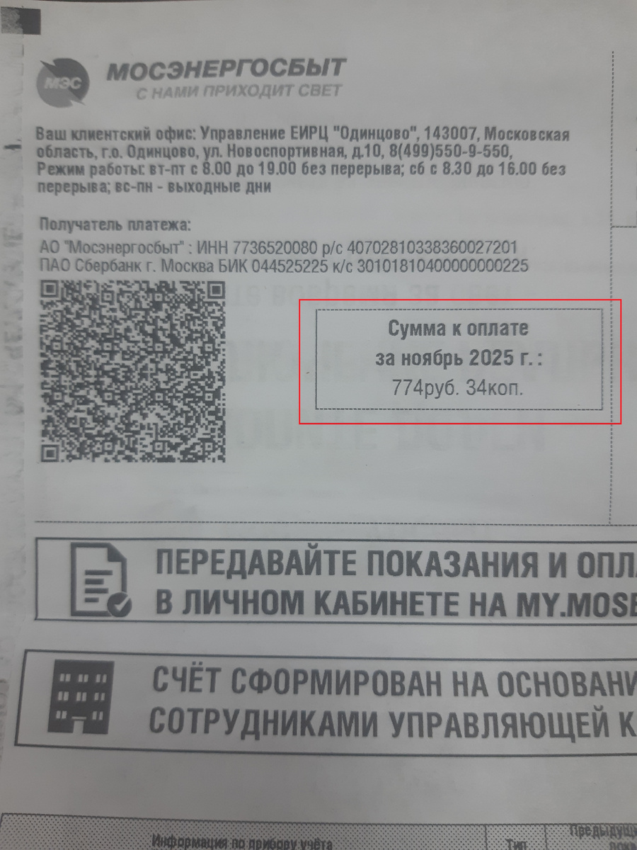 Приветствую всех моих читателей и многоуважаемых подписчиков моего канала. Сегодня маленькая но поучительная предновогодняя статься о "любимой" многими компании "Мосэнергосбыт". Мне как и думаю многим в нашей стране приходится регулярно "общаться" данной компанией. Ладно что оплачиваю счета, но почему то постоянно приходится с ними бодаться в связи с перерасчетами. Так теперь данная компания откровенно скатилась до мошеннических действий. Ситуация следующая. как всегда получаю счет за электроэнергию в ноябре. Так как уже процедура стандартная решил оплатить через онлайн клиент Сбербанка. Специально отметил сумму платежа. Ну считываем QR код и чуть на автомате не нажал оплатить. Но тадамммм Что мы видим на экране Опаньки , а сумма то вдруг стала ровно в два раза больше. Ну может думаю ошибка считывания и просто решил открыть считывание информации, а там сумма именно 1548,68 рублей. Ну вы что товарищи охамели в край и нужно с данным обратиться в прокуратуру о мошенничестве??? Я так
