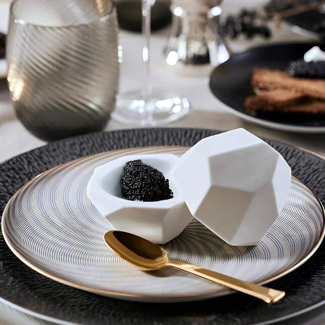 В собрании коллекций Raynaud выделяются фарфоровые менажницы Pepites, созданные Мариэлой Шварц Монтьель. Их грани, подчеркнутые матовым белоснежным фарфором, придают изделиям сходство с драгоценными камнями. Внутри менажниц вы можете выбрать минималистичное белое покрытие, платиновое или золотое, которое гармонично дополнит ваш комплект приборов.