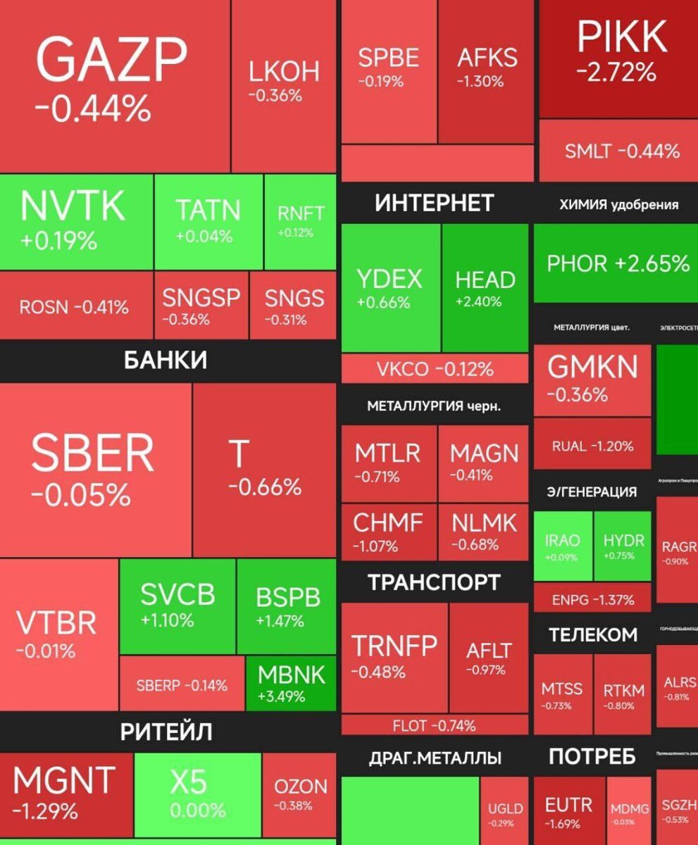 Рынок акций на Мосбирже снижается на фоне переговоров России и Украины в Стамбуле.