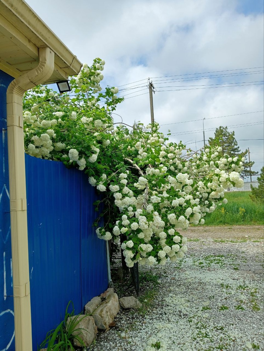 После сильного дождя и очень обильного цветения Бульдонеж совсем согнуло. Придется обстригать и делать перерыв в цветении на пару сезонов.