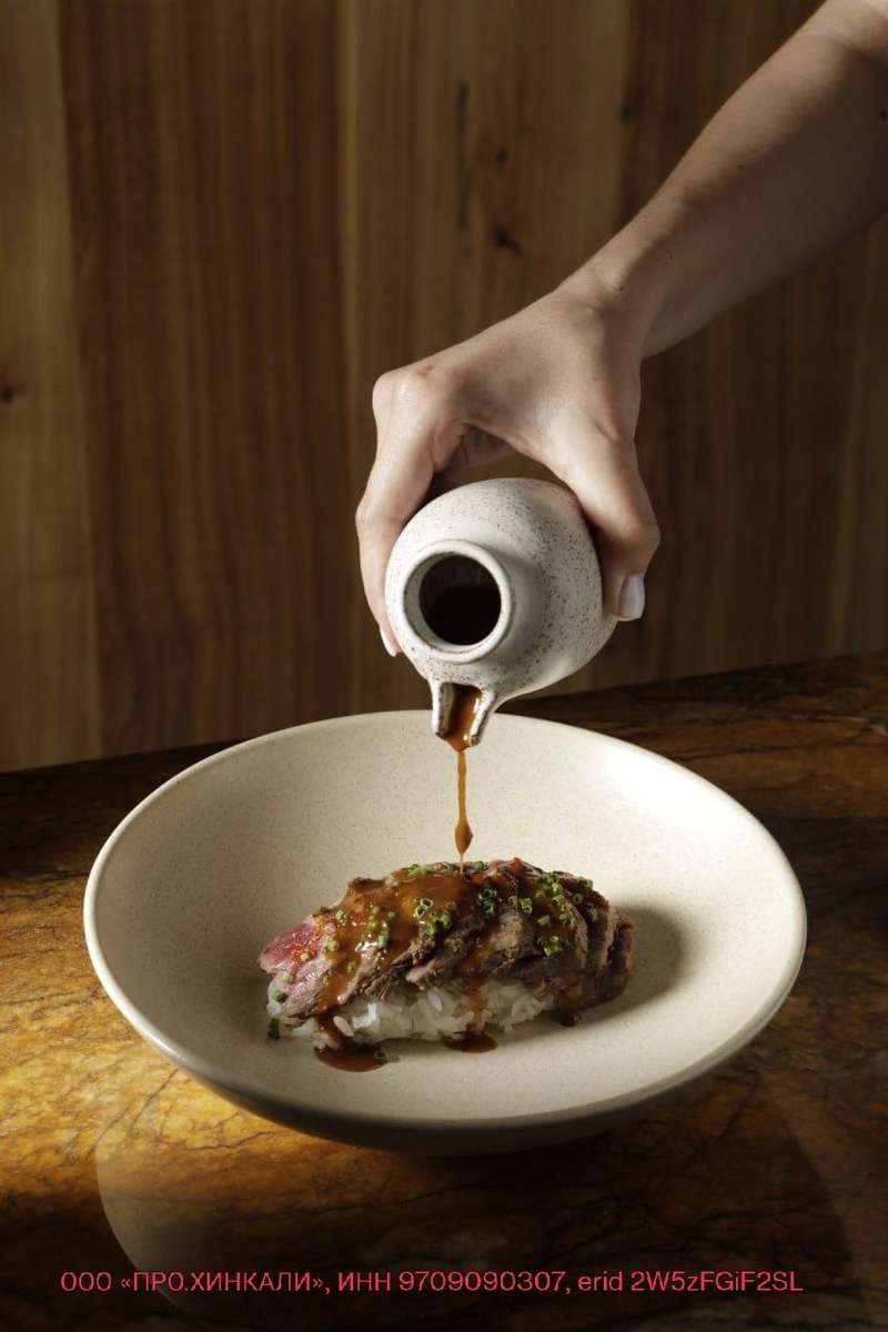 Главные по тарелочкам — японские шашлычки кушияки из рыбы, морепродуктов и мяса. Их подают отдельно или в составе авторских боулов и салатов. Также на робате готовят премиальные стейки: стриплойн и тендерлойн из японской говядины вагю, рибай и портерхаус сухой выдержки.