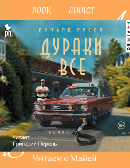 Еще тут будет удар молнии, падение в могилу, раздвоение личности, дерьмовзрыв и - вишенкой - сбежавшая кобра (которая на обложке). Руссо, мастер толстовской традиции, лепит своих дуралеев из глины высшего сорта, заставляя любить их и ненавидеть, перевод Юлии Полещук конгениален оригиналу, а для читающих ушами теперь есть аудиоверсия от ВИМБО, начитанная Григорием Перелем, дивно.