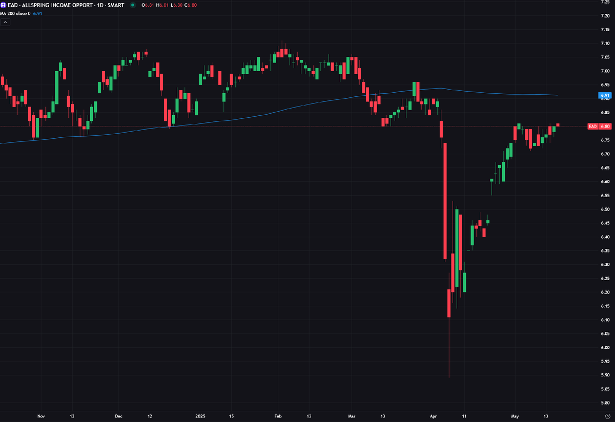 Фонд Allspring Income Opportunities Fund ($EAD) нацелен не только на рынок мусорных облигаций, но также на рынки старших кредитов и привилегированных облигаций для получения небольшого дополнительного дохода.
