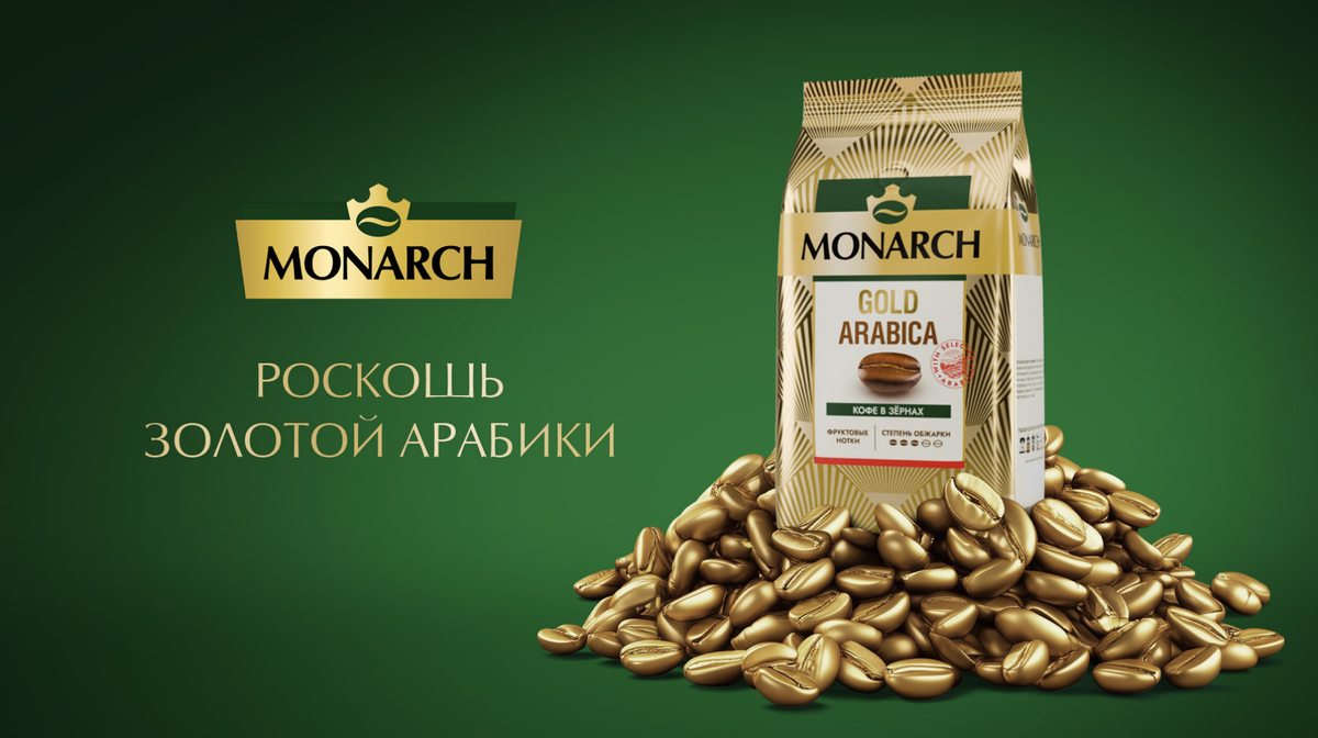 На российском рынке произошло знаковое событие: легендарный бренд кофе «Jacobs Monarch», знакомый миллионам потребителей, получил новое имя — «Monarch Original». Это стало частью стратегического решения компании JDE Peet’s, которая владеет брендом Jacobs, отказаться от использования этого названия в России. Несмотря на смену имени, качество и характер напитка остались прежними — узнаваемыми и любимыми. Чтобы поддержать обновление бренда и помочь потребителям легко идентифицировать продукт на полках, наша команда разработала визуальную концепцию и рекламные материалы для новой упаковки. Главная цель — сохранить преемственность, подчеркнуть премиальный характер кофе и донести ключевое сообщение: "Новый облик — тот же легендарный вкус". Новый визуальный стиль построен вокруг ценностей качества, утончённости и изысканности. Основной акцент сделан на арабике — отборных зёрнах, из которых изготавливается Monarch Original. Лейтмотив всей рекламной кампании: «Роскошь золотой арабики» — это не