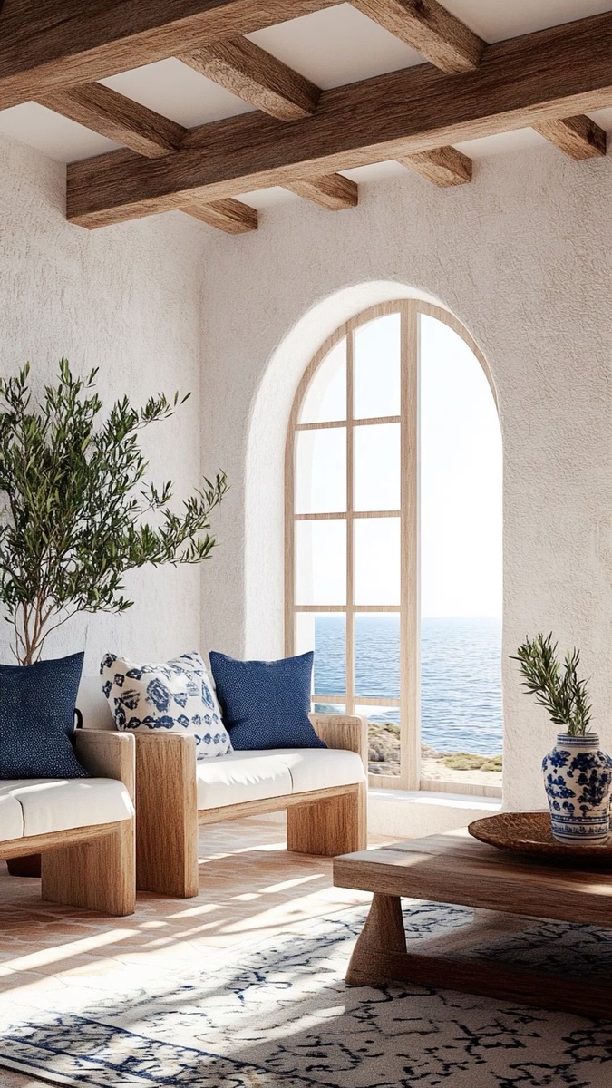✅ Акценты из морской тематики: ракушки, керамические вазы, морские пейзажи.