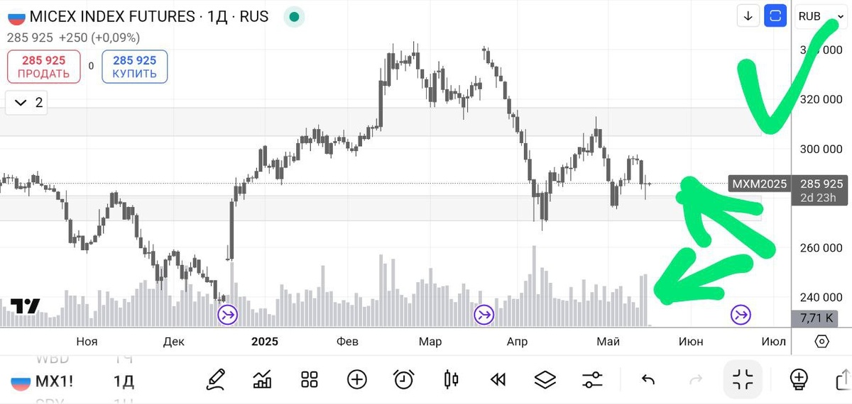Под названием "добой тренда" виден на графике фьючерса на индекс Мосбиржи.