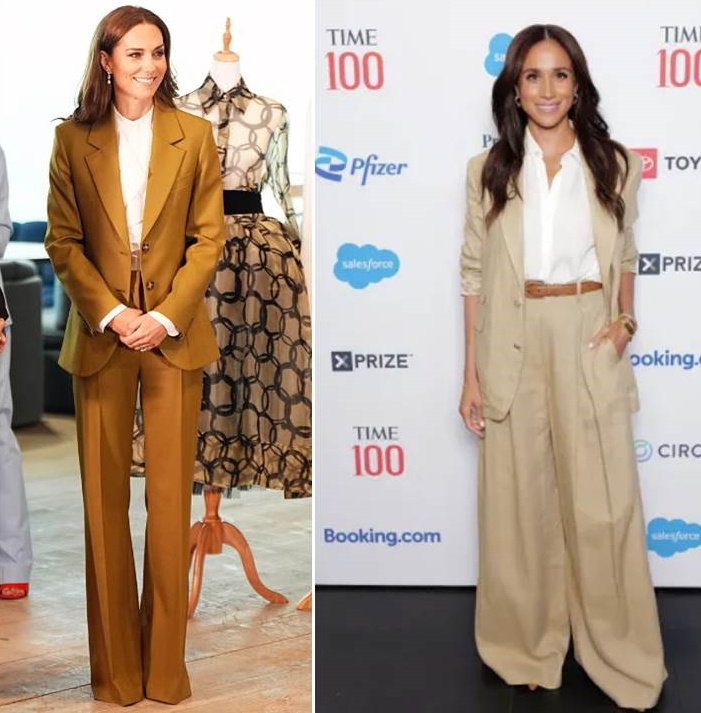 Считается, что длина брюк до середины каблука bootcut зрительно вытягивает фигуру и удлиняет ноги. Почему не у всех такой эффект получается. Такая модель нравится многим знаменитостям. Дизайнер Виктория Бекхэм часто носит брюки такого фасона, недавно брюки такой длины показала принцесса Уэльская, а герцогиня Сассекская только такие брюки и носит, рост вытягивает. Но на Виктории и Кейт длинные брюки смотрятся хорошо, а когда их надевает Меган – она становится похожей на Гавроша, который украл чужую вещь, когда она сушилась после стирки на веревке во дворе, и теперь носит. Почему создается такой эффект? Чтобы женская нога смотрелась как колонна должна соблюдаться пропорция между длиной и шириной. Длина и ширина должны уравновешивать друг друга, ширина не должна преобладать, то есть брюки не должны быть слишком широкими. У Виктории и Кейт это правило соблюдается, у Меган нога – колонна превращается в ногу – тумбу, узкие брюки она в принципе не носит, только широкие. И достигает этим обрат