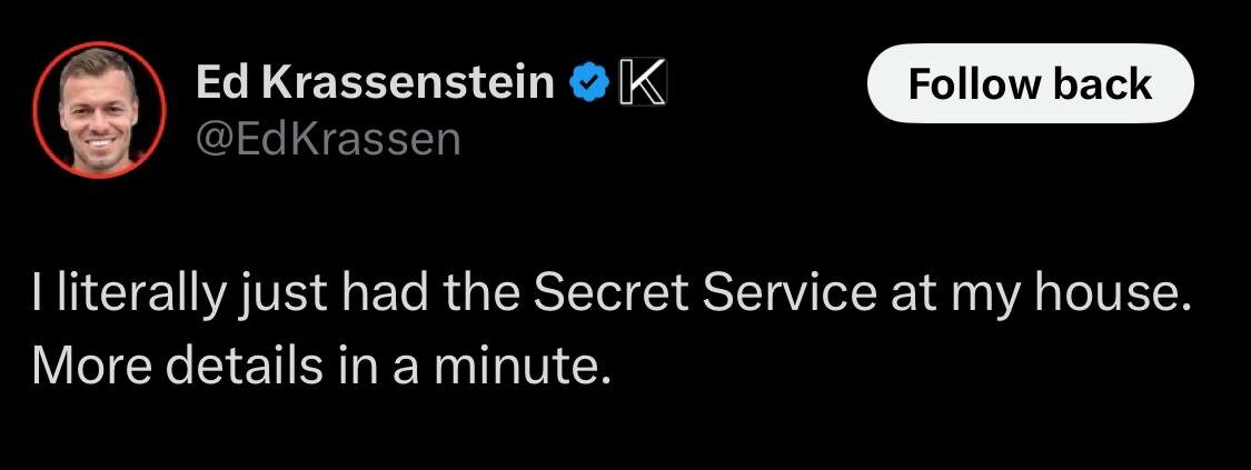 Ed Krassenstein in HOT water after supporting 86-47 post: ‘I literally just had the SECRET SERVICE at my house' Just hours after Comey spoke to AGENTS Justified?