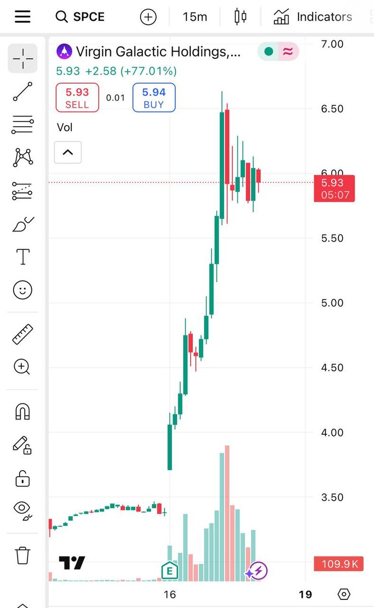 $SPCE #SPCE еще живы как и дедушка с островом лемуров. Инфляция совсем не щадит никого в их омЭриках, последняя цена на полет в якобы настоящий космос за невнятную 10 минутную болтанку в невесомости была 600 000$. Дед объявил о повышении цен. Акция ракетит на 16%. Ранее 12 июня 2024 был обратный сплит 1 к 20 😄 Т.е. если текущие 5,93 поделить на коэффициент 20, то та самая Галя, что некогда была на хайпе 60$ сейчас фактически стоит… 0,2965$ 😬 P.S. Напомню аналогичная болтанка в околокосмосе стоила у нас 3 года назад: Миг 29 стратосфера - 600 000р Ил-76 МДК - 380 000р Сейчас наверное раза в 2 дороже, но все равно не 600 000$ 🙄 Тут разрешаю стукнуть себя пяткой в грудь и крикнуть гойда. Здесь уместно. (с) Сосиска @sosisochnayagazeta