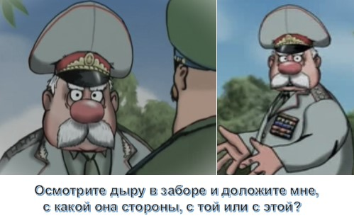 Проезжая мимо генерал увидел в этом заборе дыру, в которую входили и выходили солдаты.