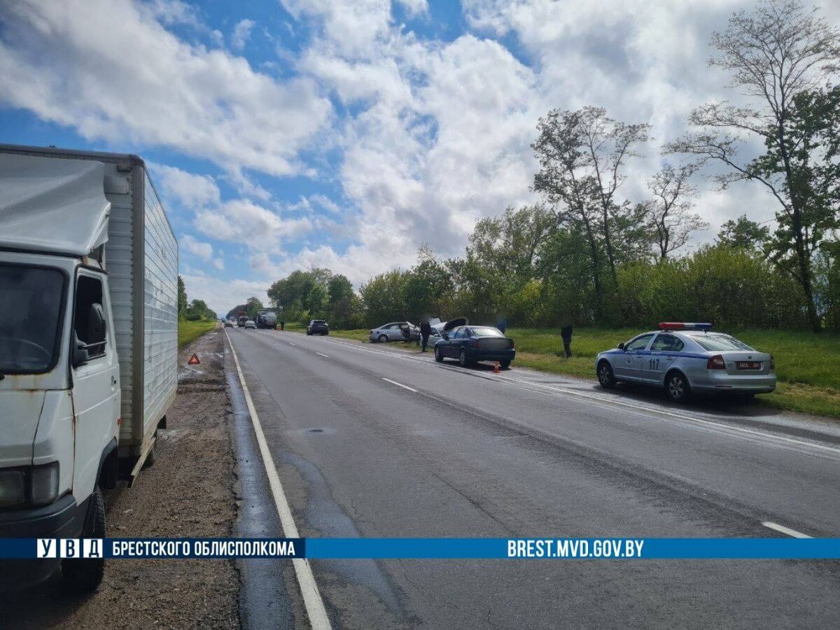 63-летний житель одной из деревень района, управляя автомобилем «Audi», двигался по автодороге Р-83 «Брест-Каменец-Национальный парк «Беловежская пуща»» в направлении агрогородка Чернавчицы. По предварительной информации, на 11 километре указанной автодороги при выполнении маневра обгона совершил столкновение с грузовым автомобилем «SITRAK» в составе с полуприцепом под управлением 48-летнего брестчанина, который двигался во встречном направлении. От удара автомобиль «Audi» отбросило назад и произошло столкновение с попутным автомобилем «Nissan» под управлением 55-летнего жителя Гродненской области. После столкновения автомобиль «Audi» опять выехал на встречную полосу движения, где столкнулся с автомобилем «Geely» под управлением 41-летнего жителя Каменецкого района. В результате автомобили «Audi» и «Geely» съехали в левый по ходу движения кювет.