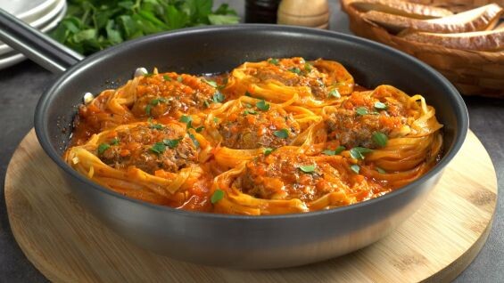 Приготовьте вкусное и сытное блюдо - гнезда тальятелли с мясным фаршем. Для этого вам понадобится сковорода, макароны тельятелле, лук, морковь и совсем немного специй. Уверены, вы останетесь довольны результатом. Время приготовления: 45 минут Количество порций: 3 Калорийность: 162 kCal 1. Если вы предпочитаете менее густой соус, добавляйте на 100-150 мл больше воды. 2. Воду можно заменить мясным, куриным или овощным бульоном, блюдо получится еще вкуснее. 3. Мясной фарш можно использовать любой, если фарш вам кажется недостаточно сочным, добавьте 1-2 ст.л. холодной воды. 4. Приправы используйте и добавляйте по вашему вкусу. 5. Пшеничную муку для соуса можно заменить ржаную или овсяную. 6. Добавьте в соус кусочек сливочного масла, блюдо приобретет сливочный вкус. 7. Если используете сковороду без антипригарного покрытия, следите за приготовлением, чтобы гнезда не пригорели. ___ Если статья понравилась — поставьте лайк 👍