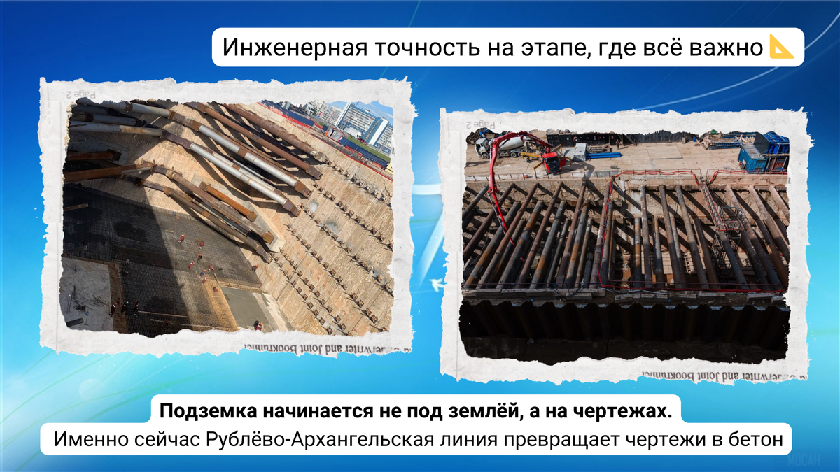 официальные отчеты. Давайте вместе разберемся, что же на самом деле происходит с нашей Москвой. Поехали? Во-первых, хотим сообщить, что в торце котлована 🚇 станции «Липовая Роща» 💸 Рублёво-Архангельской линии со стороны 🚇 станции «Строгино» ведётся устройство лотка для последующего монтажа щита. Здесь будет монтироваться тоннелепроходческий комплекс диаметром 10 метров DZ ZTE-777 "Победа", который проложит двухпутный тоннель до станции «Строгино». Детали самого щита продолжают прибывать на площадку. Во-вторых, хотим сообщить, что ведётся заливка бетоном основания котлов