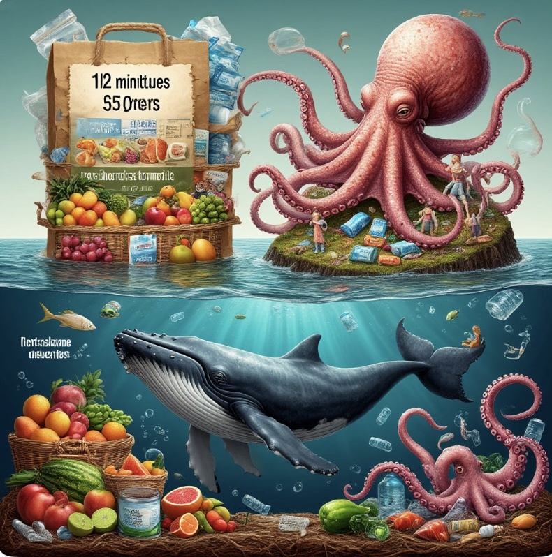 Я — пакет, который видел конец света. Исповедь пластикового странника Меня звали Шёпот Ветра. Я родился на фабрике в Индонезии, где нефть превращали в прозрачные плёнки, а рабочие мечтали о море, которого никогда не видели. Мое предназначение? 12 минут нести покупки, потом — вечность. Жизнь до апокалипсиса Первым моим хозяином была старушка с рынка. Она положила в меня манго и бананы, приговаривая: «Спасибо, дорогой, ты такой прочный!». Потом бросила у ларька с водой. Ветер подхватил меня, и я полетел — мимо рисовых полей, где дети гоняли мяч из тряпок, мимо рек, в которых плавали мои собратья-пакеты, как медузы-убийцы. Встреча с китом-мечтателем В океане я встретил юного кашалота. Он принял меня за кальмара и проглотил. — Ты странно хрустишь, — пробурчал он, пока его желудок пытался переварить мои полимеры. Через месяц он выбросился на берег. Учёные вскрыли его и нашли меня среди 40 кг пластика. На ленте новостей написали: «Ещё одна жертва человеческой беспечности». Перерож