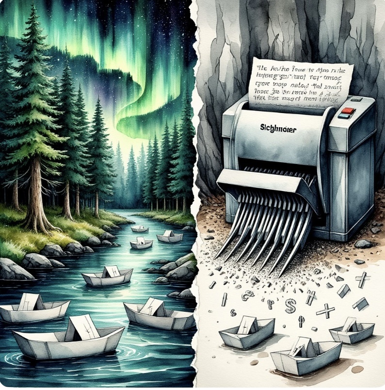 Я родилась в канадской тайге, где вековые деревья рассказывали ветру саги о викингах. Но люди решили, что моя судьба — стать отчетом о прибыли, который прочитают один раз и выбросят.