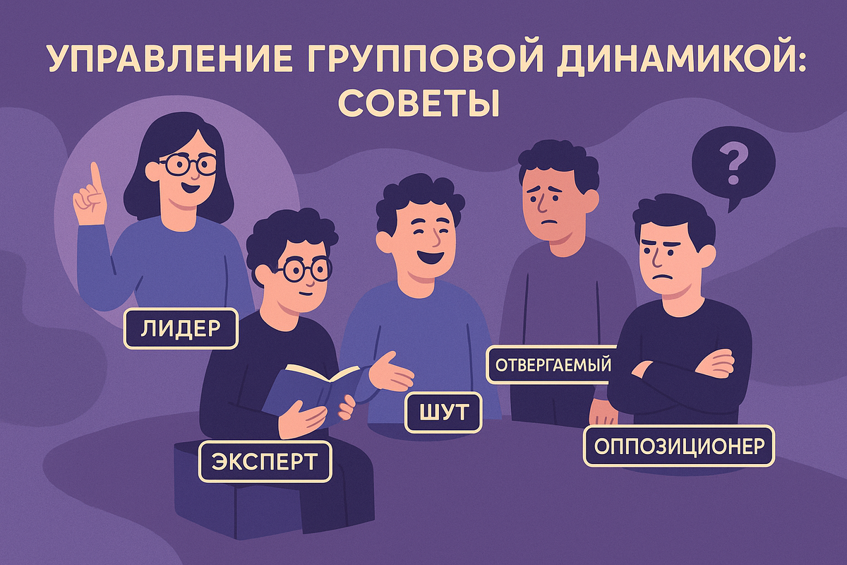Любой коллектив – это живой организм. Важно понимать групповую динамику, в каких ролях представлены те или иные члены коллектива. Управление групповыми ролями помогает создать гармоничную и продуктивную команду. Поддерживайте баланс между различными ролями и поощряйте их взаимодействие для достижения общих целей. Расскажу об основных ролях и дам советы по конструктивному взаимодействию с ними. Базовые групповые роли: Лидер, Эксперт, Рядовой (Любимчик, Шут, Мученик, Отшельник), Отвергаемый и Оппозиционер 1. Лидер — ключевая фигура группы, он нужен для мотивации и организации. 2. Эксперт помогает принимать обоснованные решения, опираясь на свои знания. 3. Рядовые — основа группы, от их лояльности и участия зависит общая производительность. Подтипы Рядовых: Любимчик Шут Мученик Отшельник 4. Отвергаемые часто отстают, но всё ещё могут принести пользу. 5. Оппозиционеры критически относятся к идеям и планам, но это может быть полезно для уравновешивания мнений.