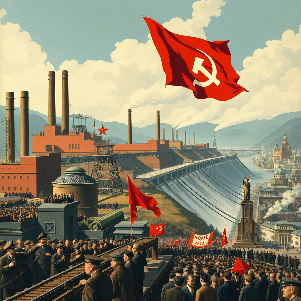 Сталинский путь модернизации, воплощенный в политике форсированной индустриализации и коллективизации сельского хозяйства в СССР в 1930-е годы, стал одним из самых противоречивых и драматичных периодов в истории страны. За короткий срок Советский Союз совершил гигантский скачок в развитии промышленности, превратившись из аграрной страны в мощную индустриальную державу. Однако, этот рывок был достигнут ценой огромных жертв и тяжелых социальных потрясений. Необходимость модернизации: К концу 1920-х годов стало очевидно, что НЭП (Новая экономическая политика) не обеспечивает достаточных темпов экономического роста и укрепления обороноспособности страны. СССР отставал от развитых капиталистических стран в области промышленности и технологий, что представляло угрозу его существованию. Сталин и его сторонники считали, что необходимо форсировать индустриализацию и коллективизацию, чтобы догнать и перегнать Запад. Индустриализация: Коллективизация: Цена “великого перелома”: Сталинский путь мо