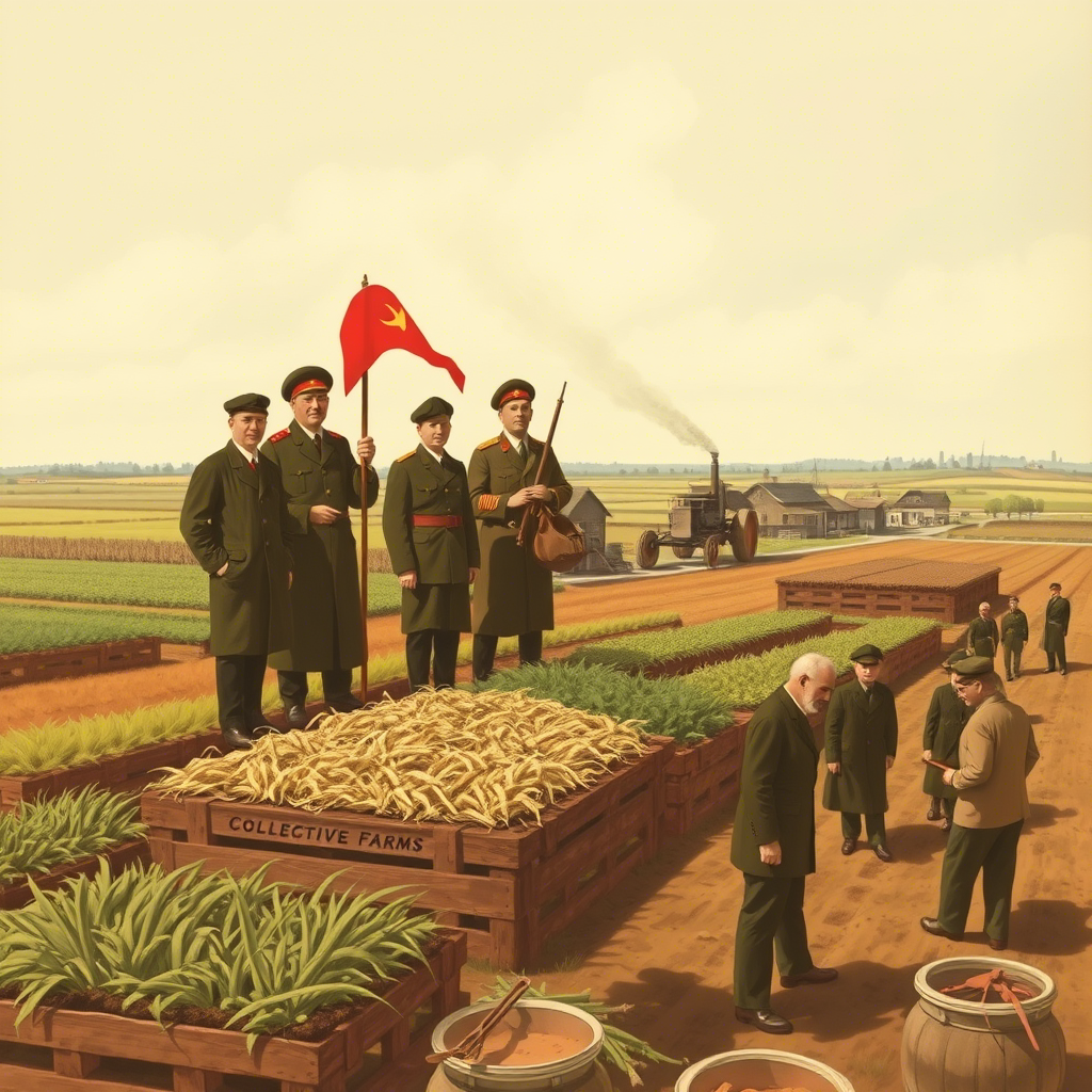 - Обеспечение индустриализации ресурсами: Получение продовольствия и сырья для промышленности путем централизованного контроля над сельским хозяйством.