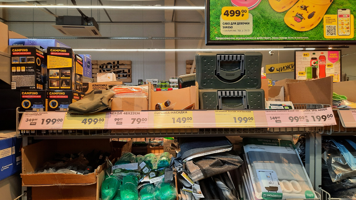 Всех приветствую, мои дорогие друзья и подписчики. Очень много товаров ,на которые снижена цена. Магазин находится по адресу Ростовская область, Зерноградский район, город Зерноград, улица Колодина, 15. Светодиодный светильник фонарь скидка 43 % цена 199 руб. Чехол для обуви размер 48×22 см цена 79 рублей. Удобрение комплексное минеральное цена 99 рублей. Носки, трусы ,пижама и брюки мужские тоже цена снижена. И здесь все Витрины в розовых ценниках. Наматрасник Мулетон размер 180×200 руб цена со скидкой 31 % 549 руб. Жилет женский размер 52-58 цена со скидкой 849 рублей. Полуботинки Кроссовки мужские Svasso размер 41-45 цена со скидкой 54 % 599 рублей. Комплект постельного белья, плед Шахматка, Штора и портьера цена снижена на 39 %. Пряжа плюшевая 64 м для ручного вязания цена 69 рублей. Воздуходувка аккумуляторная цена со скидкой 25 % 1499 руб. Мантоварка с крышкой 3 яруса Kitchen Collection цена снижена на 50 % 1249 рублей. Шваьку бабочку можно купить за 249 рублей.