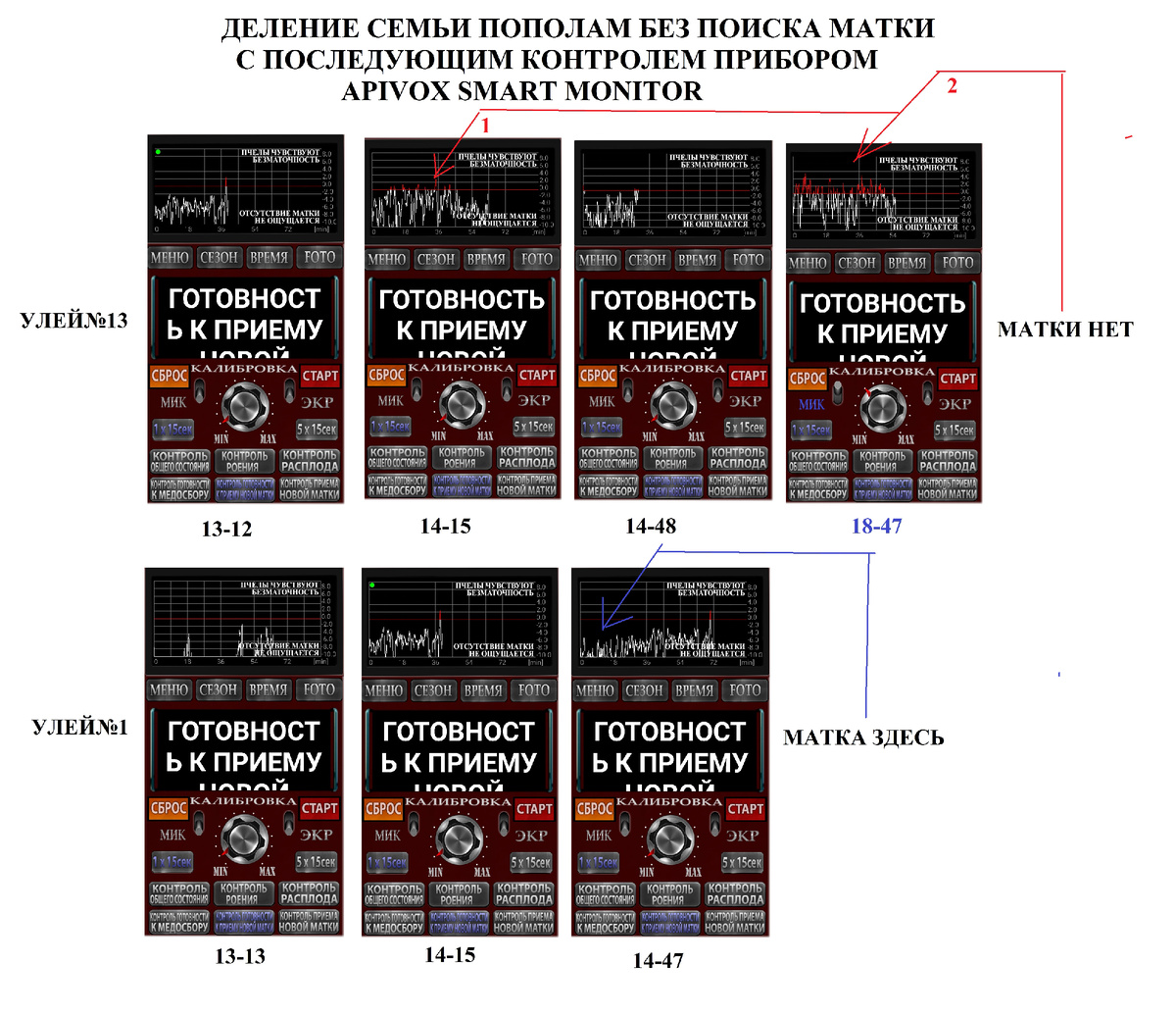 Делилась семья №13. Отводок был помещен в улей №1. Причина такого деления в том, что за 3 осмотра с полной переборкой всех рамок, так и не удалось найти матку! Видимо матка не меченая и не крупная, а пчел много. Пришлось прибегнуть к проверенному методу.