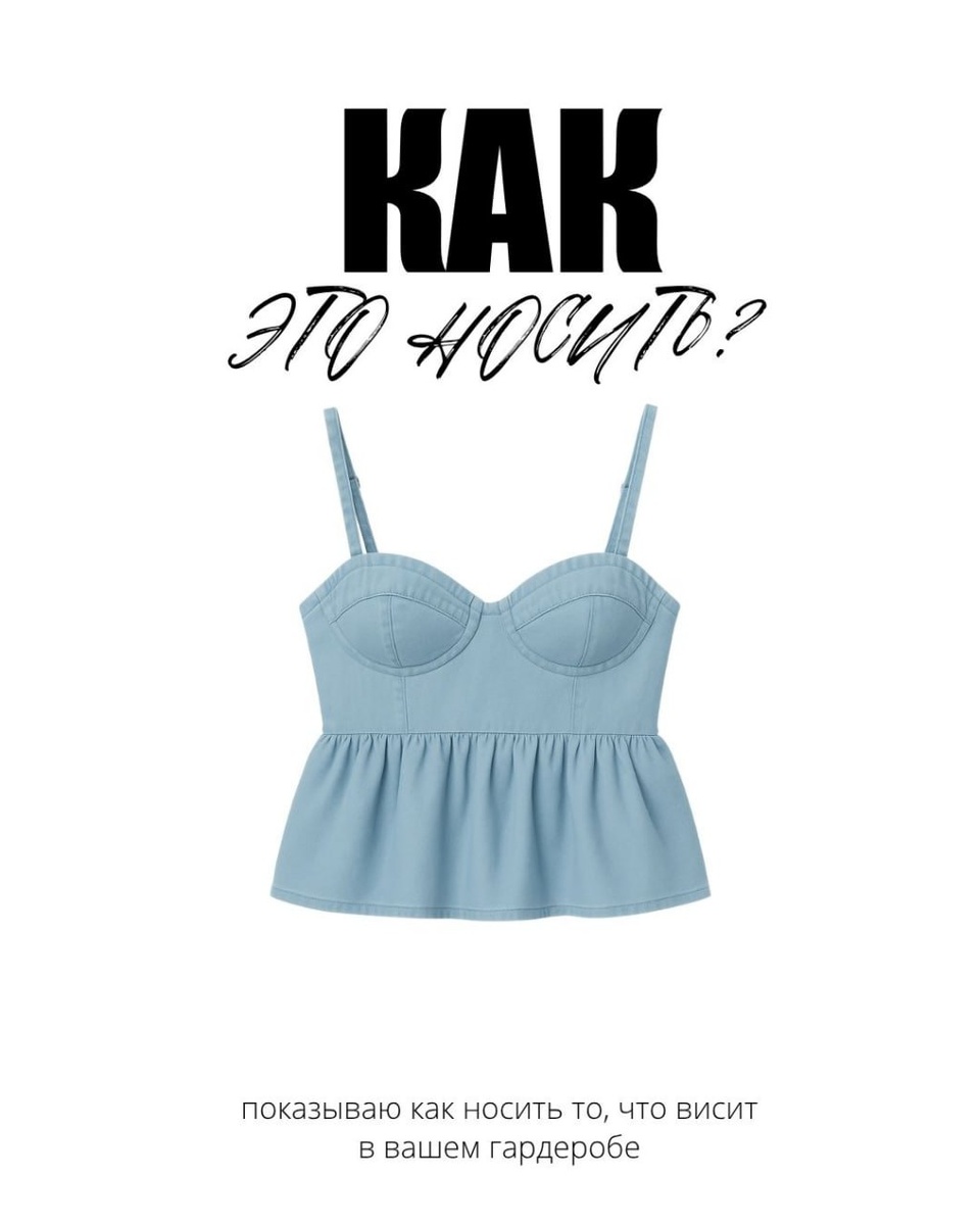Сегодня в рубрике #счемэтоносить помогаю Варваре стилизовать классный джинсовый топ с баской. Отдельно Варвара попросила, подобрать дополнительный слой, чтобы верх был не слишком открытым Вещь 100% летняя, и образы тоже летние и легкие. Подобрала варианты на разные случаи — от работы до романтического свидания Но! Сегодня я решила немного приоткрыть внутрянку работы стилиста Вы же помните, что вещи мы подбираем не для идеальной модели в сферическом вакууме, а конкретному живому человеку Поэтому я попросила Варвару прислать свои фотографии. И исходя из этого подбирала вещи — например, добавила четких линий и углов: белую футболку с удлиненным рукавом, юбку с запахом, рубашку с воротником На эфире 18 мая расскажу подробнее, какой тренд использовала и как адаптировала его к внешности Варвары. Если хочется немного заглянуть за кулисы работы стилиста — приходите. ИДУ НА ЭФИР