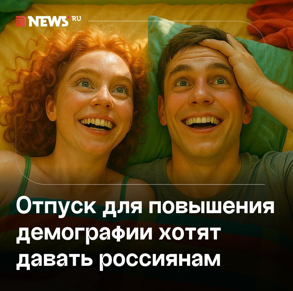 Отпуск для секса? Такая возможность может появиться у россиян. Да-да, вам не показалось, но обо всем по порядку. В Госдуме предложили давать россиянам еще один отпуск, так называемую «демографическую неделю». Предполагается, что в эти семь дней пары отвлекутся от стресса, лишних проблем и смогут полностью посвятить себя повышению рождаемости нашей страны. Ну а те, у кого нет второй половинки, займутся ее поисками. Интересно, а после такой недели любви будет какой-то отчет перед начальством? 🤪 ⭕️ Подписаться | Прислать новость | Буст