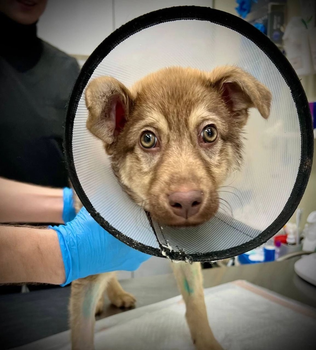 Напомним, Митя попал под машину, получил двухсторонний перелом таза со смещением. Мы навещали щенка в клинике в понедельник. Он перенес 2 очень сложных и редких в исполнении операций. Легче ему стало заметно, он явно перестал испытывать постоянную боль. Хирург остался очень доволен, поскольку он сразу оценивал шансы как весьма рискованные. Кроме общей послеоперационной реабилитации Митю держали на седативных, чтобы он как можно меньше двигался. Это было очень важно для хорошего восстановления. Пока он в стационаре, куда либо перемещать непривитого щенка смертельно опасно. Куратор привозит корм и препараты. С нас: оплата операций и пеленки. Со вчерашнего дня с Митей занимается реабилитолог. Потому что задняя часть Мити немножко атрофировалась за время вынужденного бездействия, зато вот передняя в полном порядке, широкая и бодрая! Настроение у Мити отличное, хочет играться, бегать и кусаться. Как любой нормальный щенок. После выздоровления Митя будет пристраиваться, может кто-то захочет