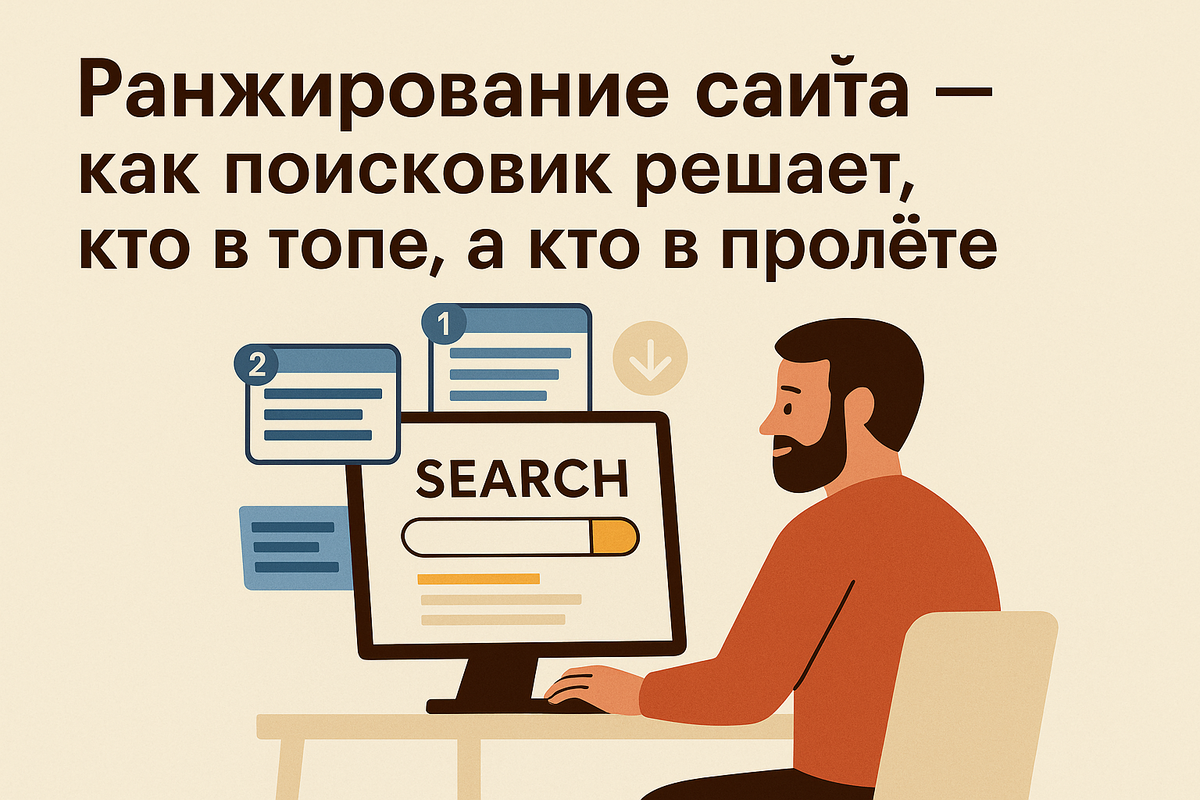 А теперь вопрос: почему именно эти сайты, а не твой? Ответ — в ранжировании. Ранжирование — это процесс, при котором поисковая система сортирует страницы по степени полезности и соответствия запросу, то есть решает, кто будет на первом месте, а кто — на пятом... а кто — на пятом десятке 🙃 Поисковик — не просто бот, который смотрит на слова. Это система с кучей факторов. Вот как она примерно думает: Если да — ты ближе к топу. Если нет — ну, сам понимаешь. 🔹 Содержание страницы — уникальный и полезный контент, отвечающий на запрос