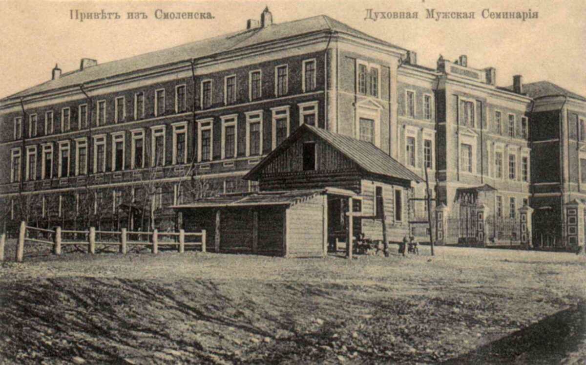 Первыми руководителями и преподавателями Смоленской духовной семинарии были воспитанники Киевской духовной академии и, преимущественно, монашествующие. Ректор Смоленской семинарии одновременно являлся настоятелем Авраамиева монастыря и преподавателем богословия, а префект - настоятелем Троицкого монастыря города Смоленска и преподавателем философии. Воспитанники семинарии всегда принимали активное участие в общественной и культурной жизни Смоленска. Так, в XVIII веке при семинарии существовал театр, в котором ставились пьесы на темы библейской истории и нравоучительного содержания. В XIX веке семинария долгое время находилась в очень стеснённых условиях, занимая до 5 мало приспособленных для нужд учебного заведения корпусов. Её новоселье в специально построенном здании по проекту О.Ф. Хартена на Спасской улице (ныне - улица Реввоенсовета) состоялось только в 1891 году. Внутри нового корпуса была устроена домовая семинарская церковь в честь апостола и евангелиста Иоанна Богослова.