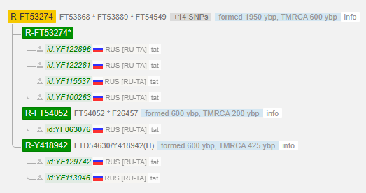 Данный субклад достигает своей наибольшей концентрации среди татар Горной стороны и старинных н.п. Зеленодольского района РТ в частности. Отдельные исследователи вовсю идентифицируют его со славянами, особенно потомками военнопленных, полоняников и пр. И они не обращают внимания что этот результат вышел у многих татар и немалая часть из них, по преданиям, были представителями местной знати. Из этого рода вышел известный в Свияжском уезде род мулл Ишимовых, идущих от Ишима Габдрашитова (~1755 - 1834), уроженца старинной д. Татарское Азелеево Свияжского уезда Казанской губернии. Правнуком Ишима был ахун Тазетдин, который оставил после себя рукописное древо своего рода, впервые напечатанное в 1926 году и сохранившееся и по сей день. Оно включает в себя 22 (!) поколения, начиная от самого ахуна Тазетдина. Но, что говорят об этом всём сохранившиеся архивные материалы? Цепочка данного рода документально прослеживается до жителя д. Татарское Азелеево - Абдрезака Ярмухаметова (~1701 - 1757)