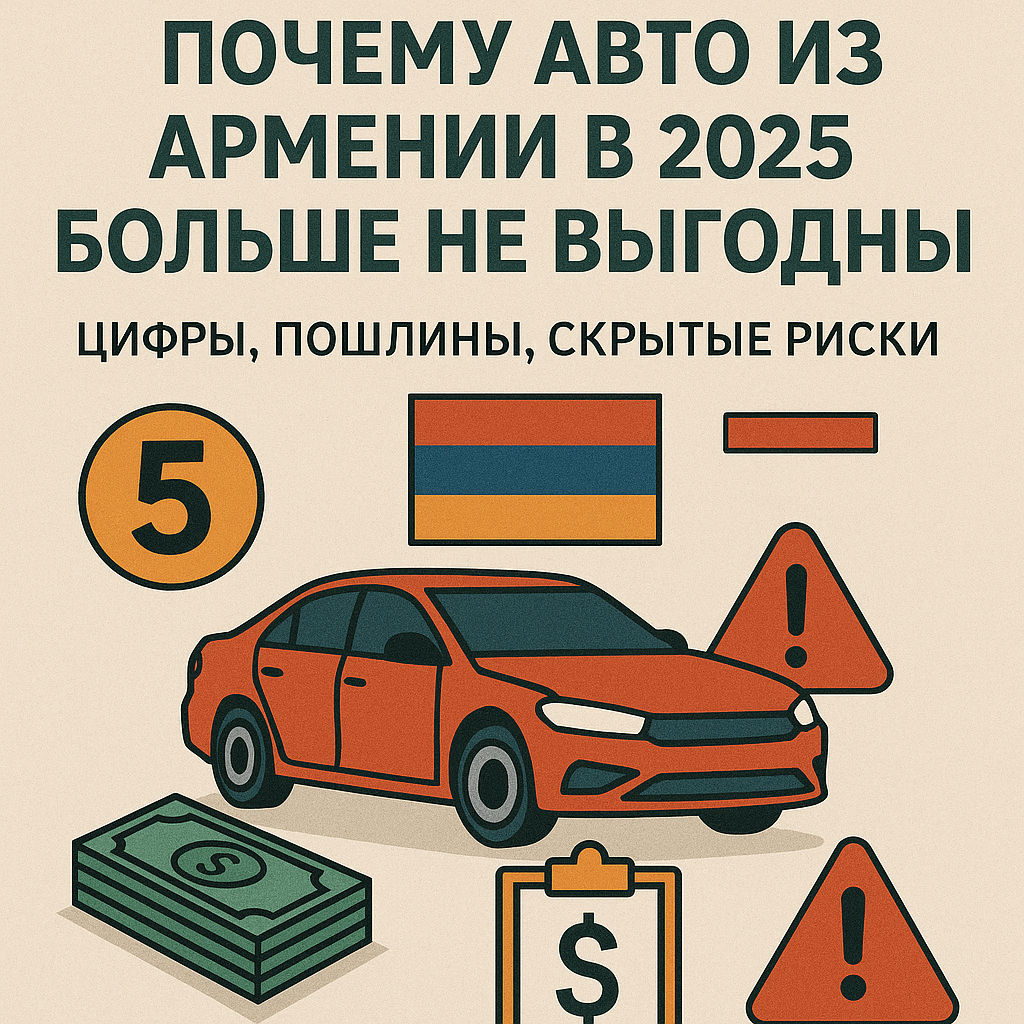 Армения - больше не золотая жила. В 2025 году ввоз машин оттуда стал дорогим, сложным и непредсказуемым. Те времена, когда можно было взять машину за копейки и легко поставить на учёт, ушли.